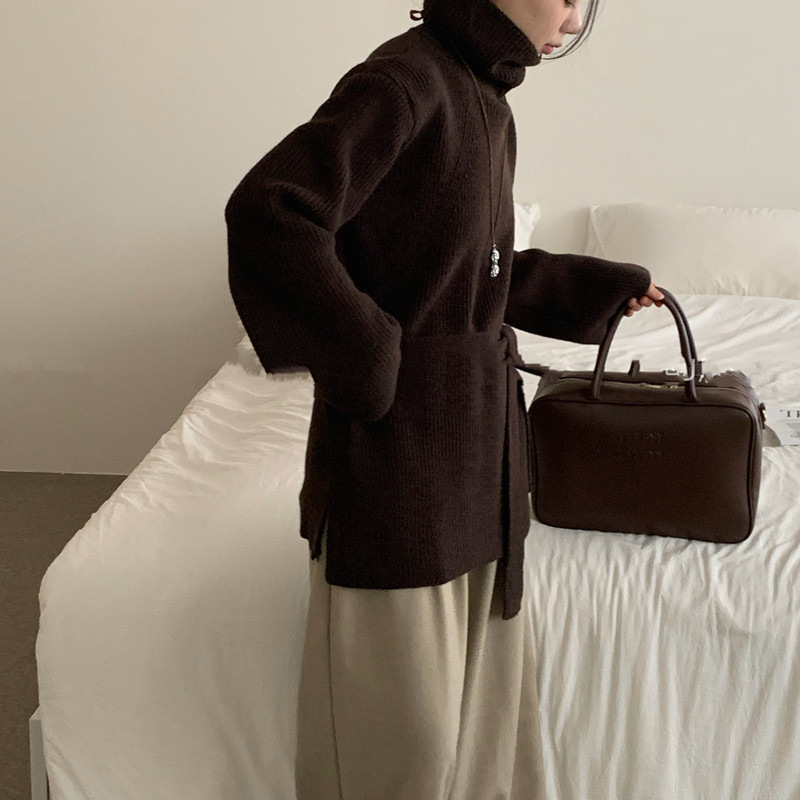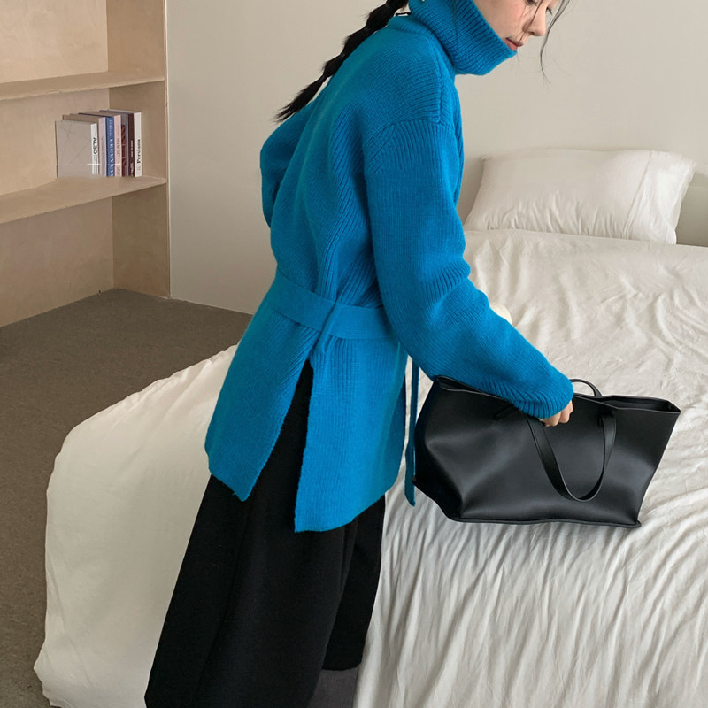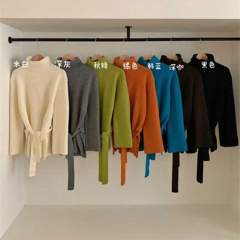 韩版设计感高领中长款套头针织衫女秋冬新款宽松收腰系带纯色毛衣,批发价,价格:63,厂家直销,韩版设计感高领中长款套头针织衫女秋冬新款宽松收腰系带纯色毛衣,免费拿样。