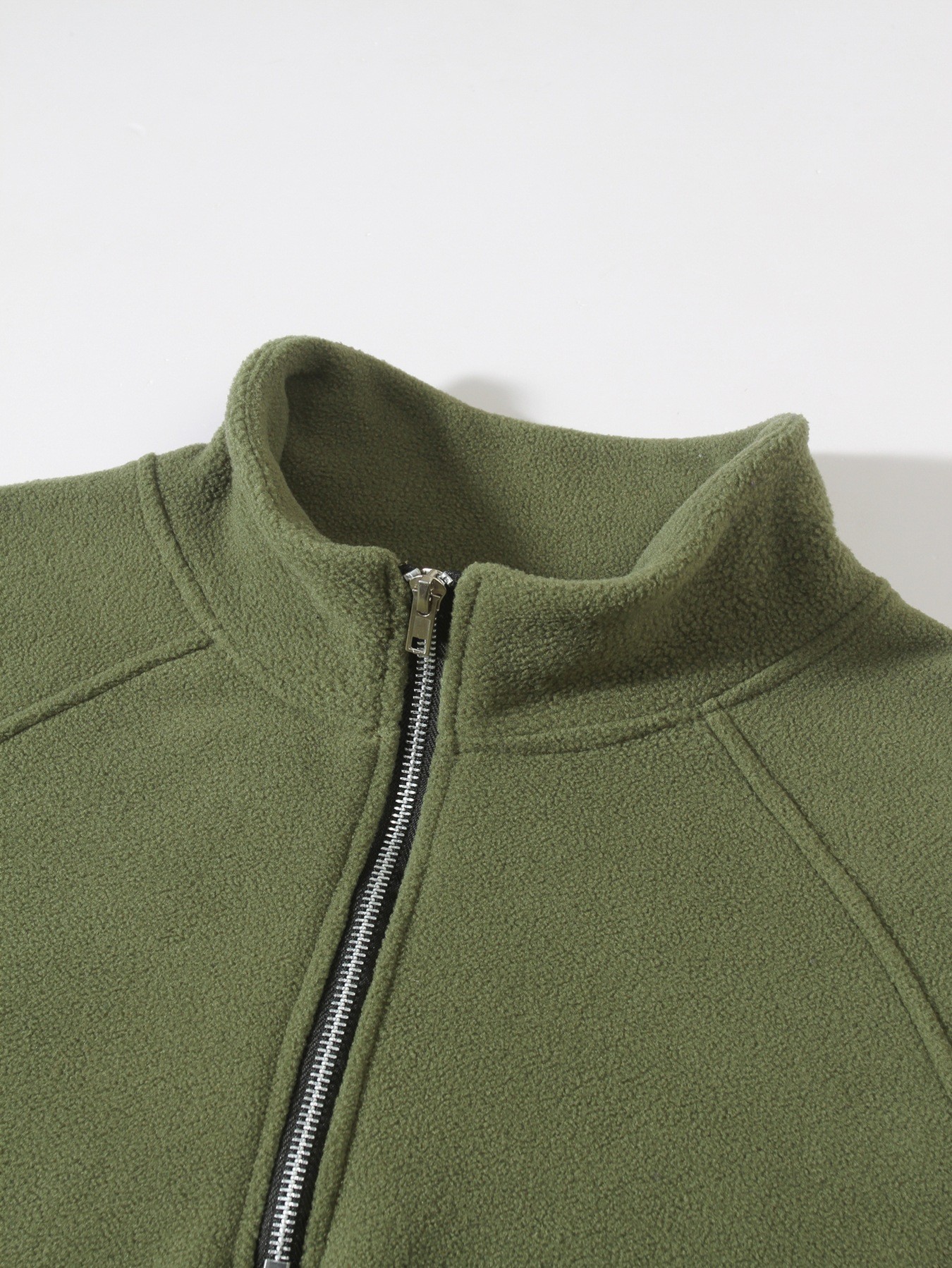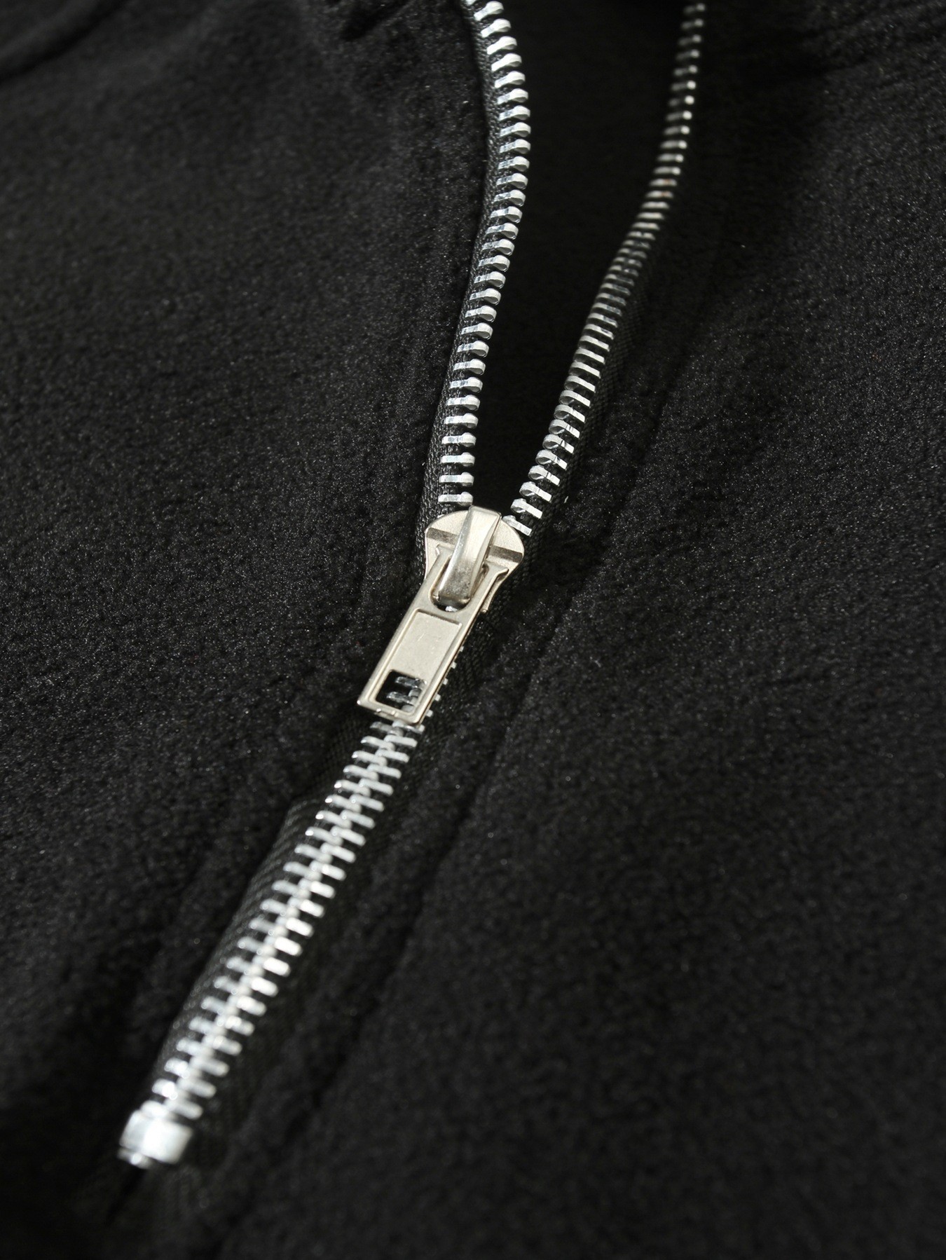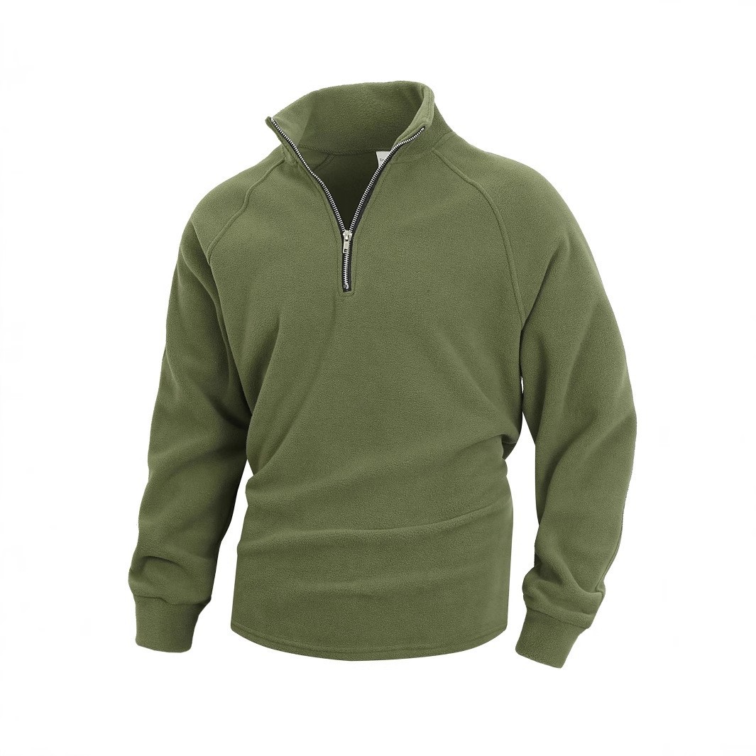 跨境欧美男式半拉链立领抓绒卫衣冬季保暖宽松纯色户外休闲长袖