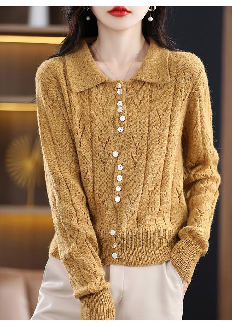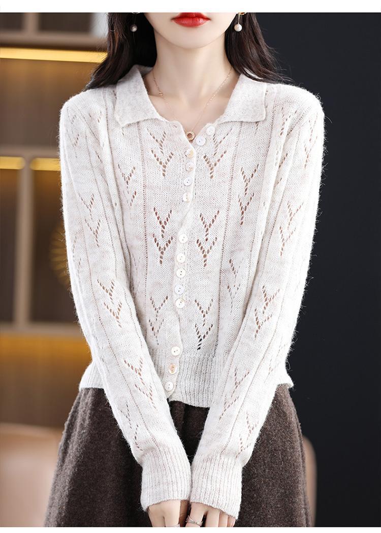 Polo领镂空外搭开衫2025新款毛衫女士时尚气质百搭宽松显瘦针织衫,批发价,价格:22,厂家直销,Polo领镂空外搭开衫2025新款毛衫女士时尚气质百搭宽松显瘦针织衫,免费拿样。