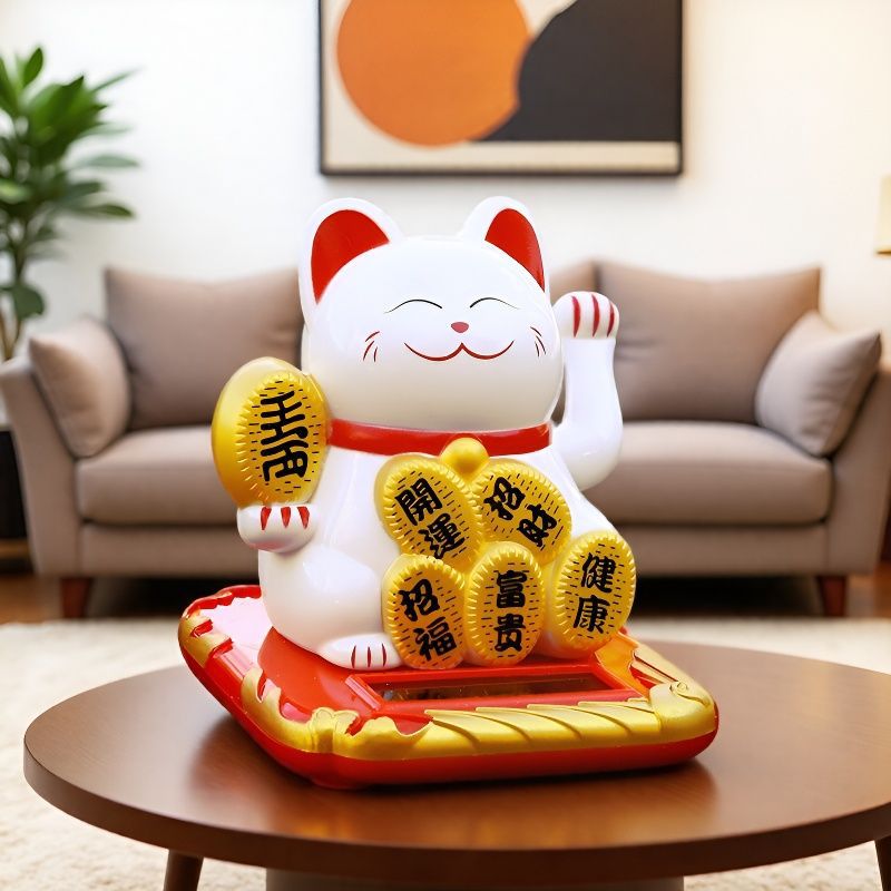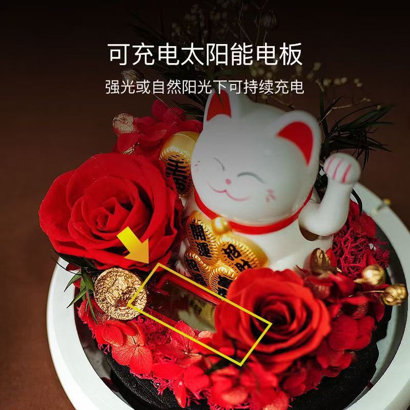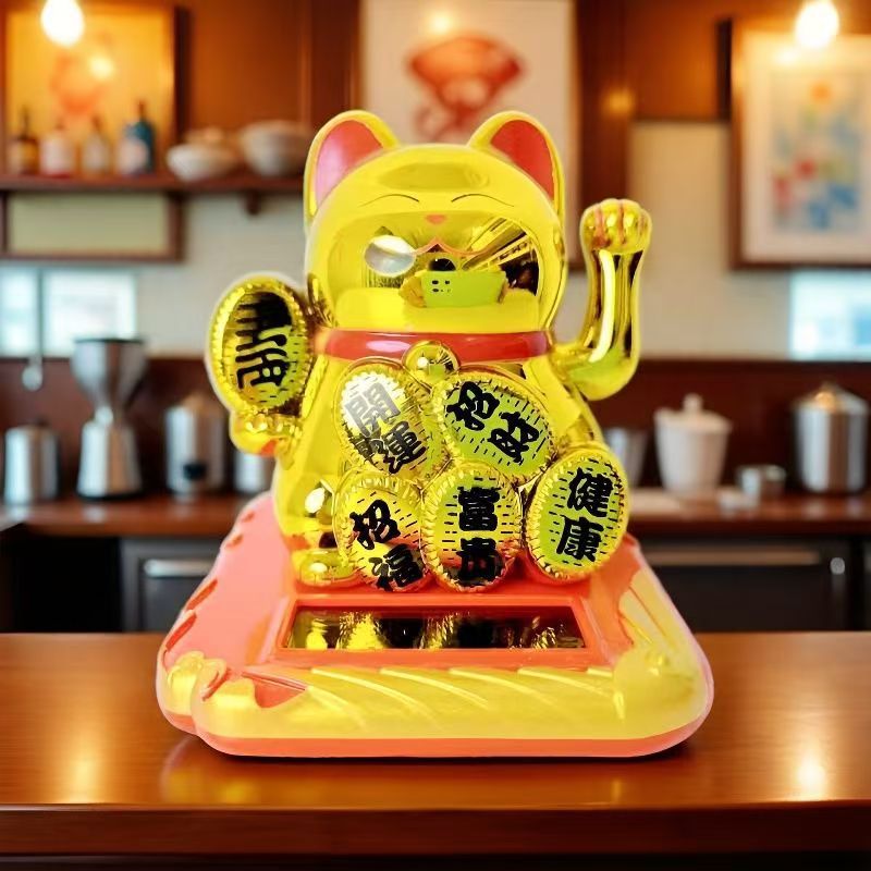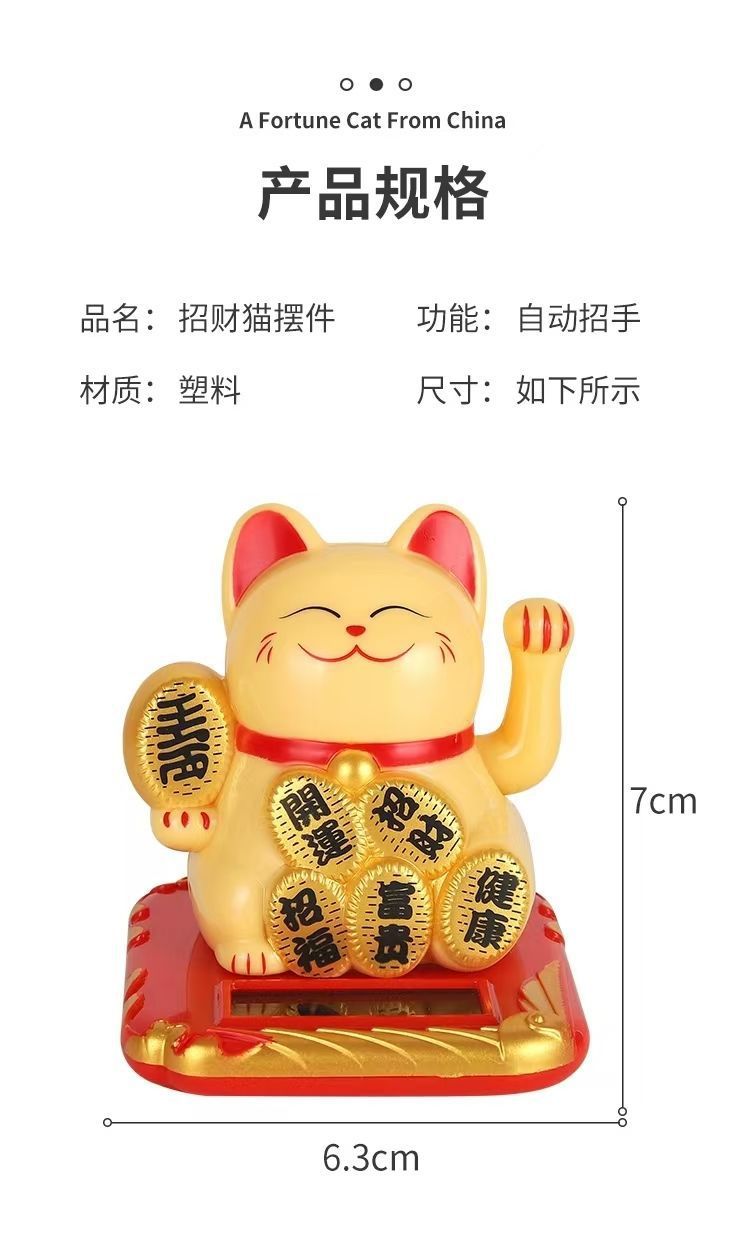 太阳能招财猫摆件自动招手店铺开业舞醒狮桌面装饰用品电动聚宝盆