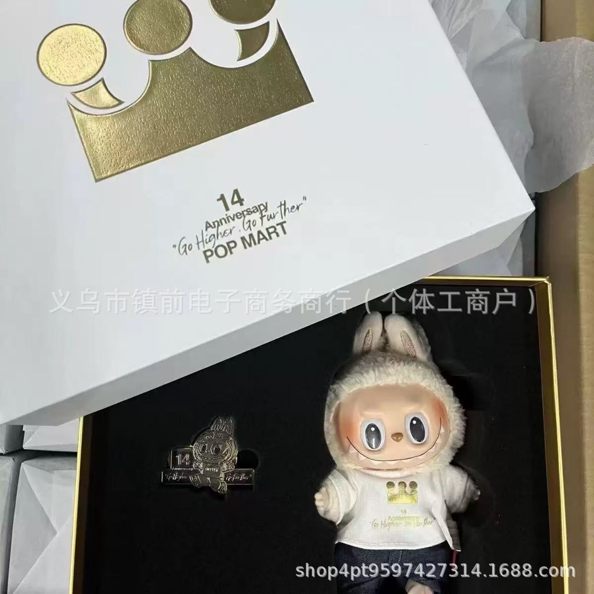 广东版拉布布14周年纪念款 高版搪胶毛绒labubu礼物挂件公仔玩偶