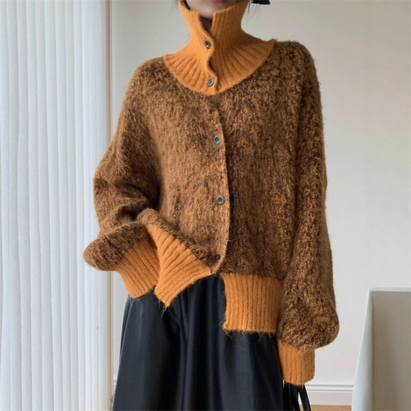 欧洲站秋冬新款设计感拼色高领针织开衫女软糯慵懒单排扣毛衣外套,批发价,价格:58,厂家直销,欧洲站秋冬新款设计感拼色高领针织开衫女软糯慵懒单排扣毛衣外套,免费拿样。