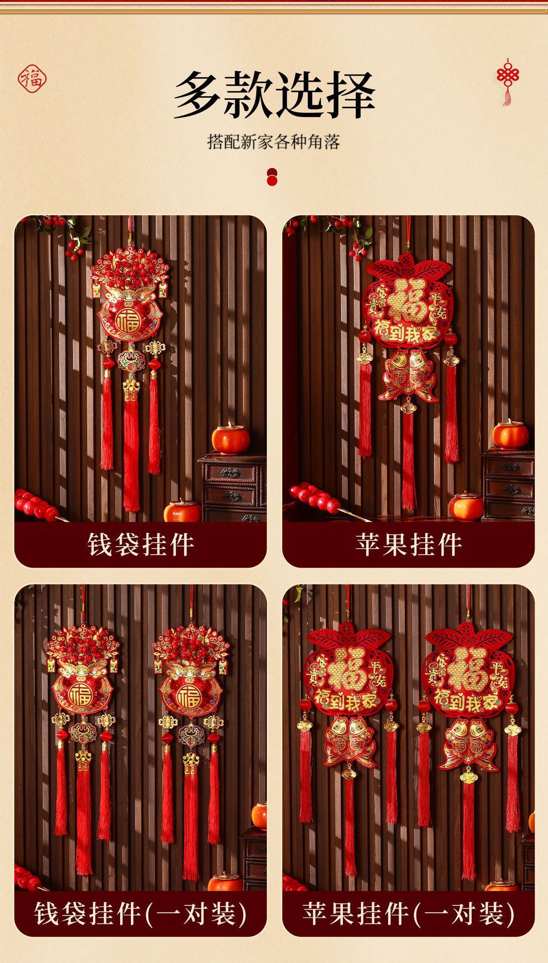 2026马年新款挂件福字钱袋苹果挂饰春节过年客厅挂件居家春节装饰