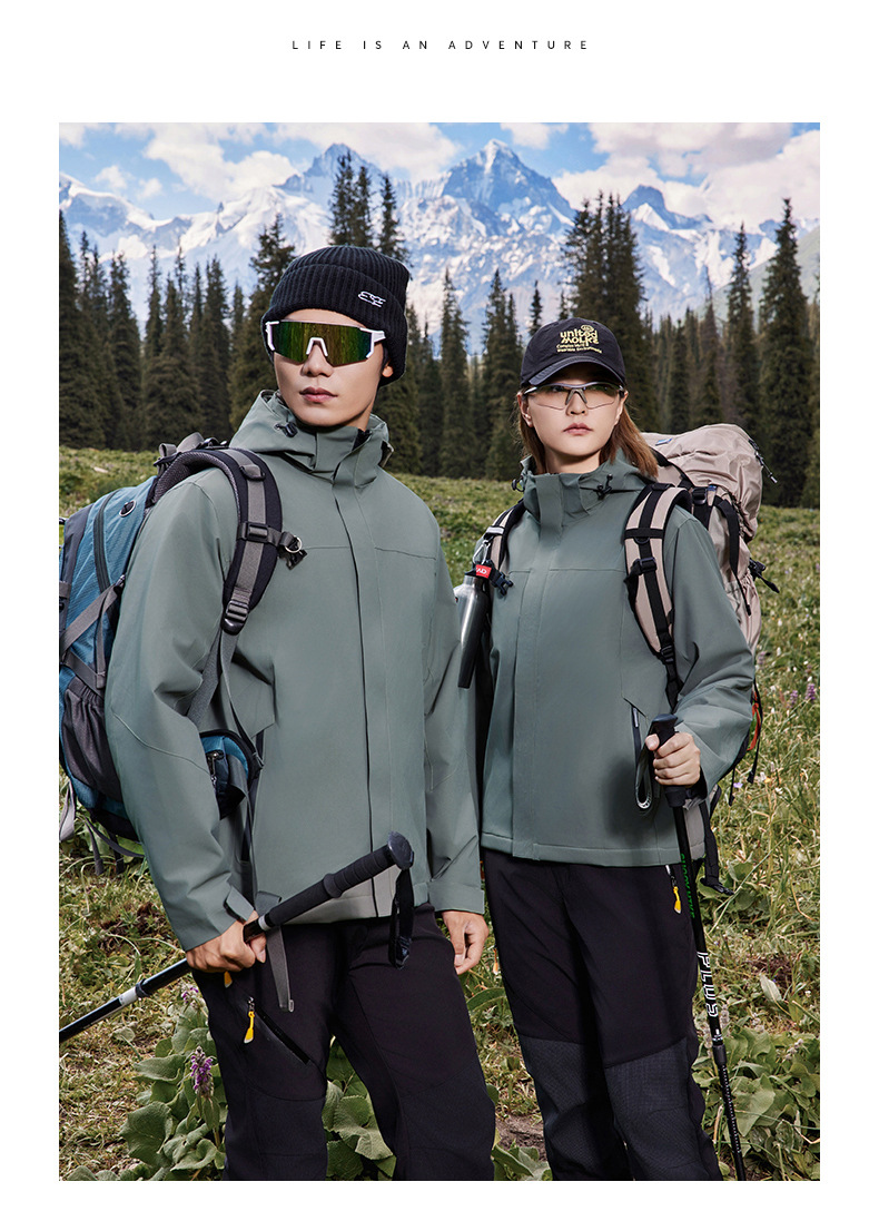 秋冬新款户外纯色简约冲锋衣百搭加厚防水三防面料男登山上衣外套