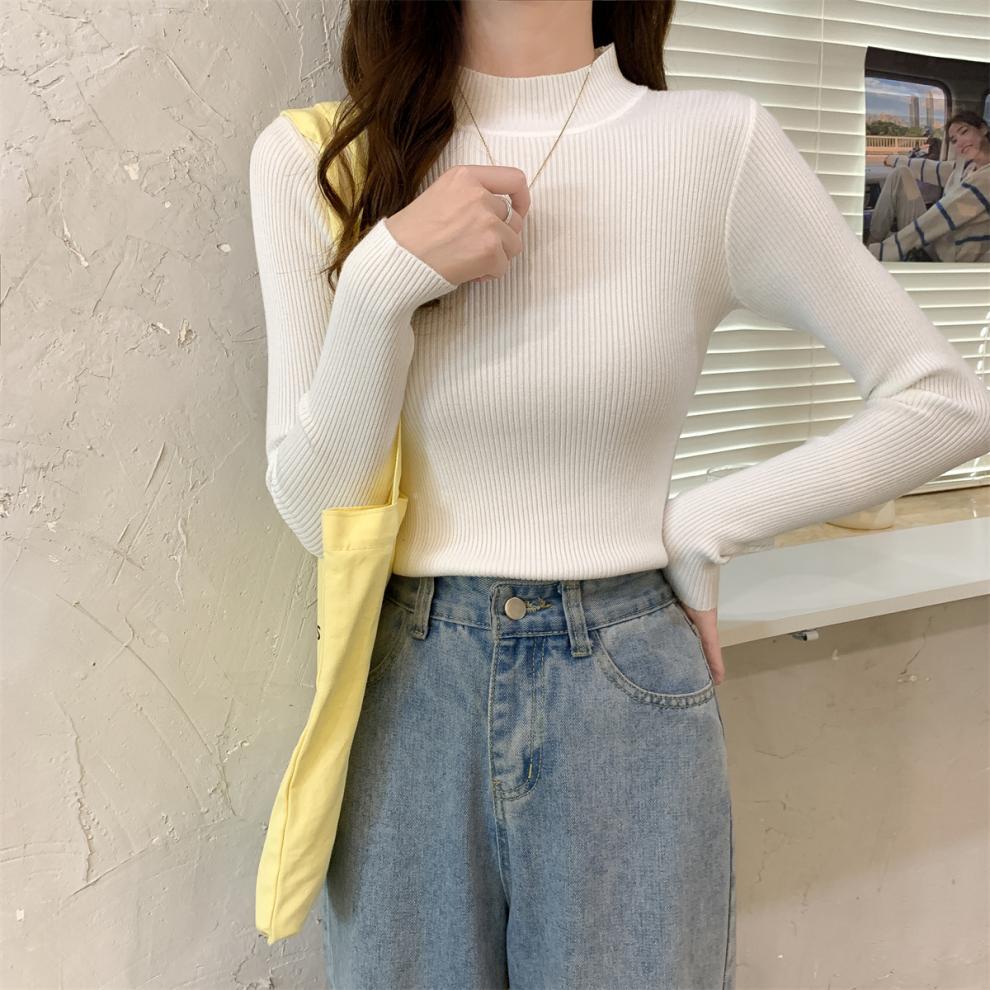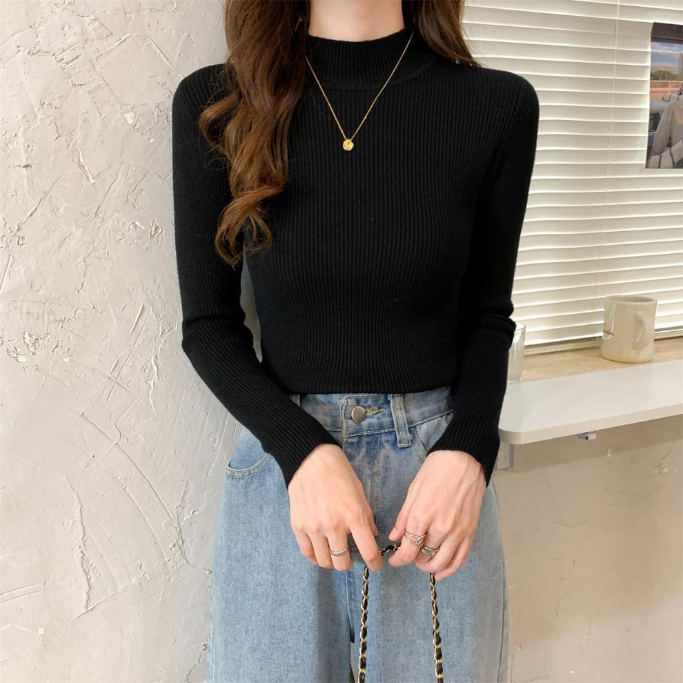实拍实价 秋冬韩版修身半高领纯色基础软糯内搭针织衫打底女毛衣