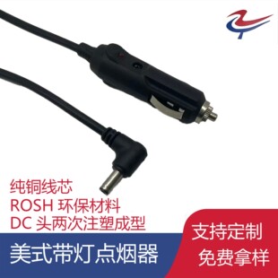 美式带灯点烟器黑头2*0.5平行线1.6米转DC5521弯头连接线