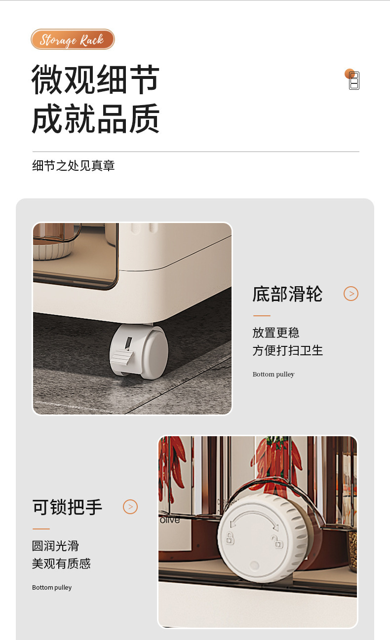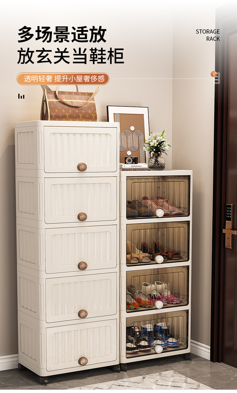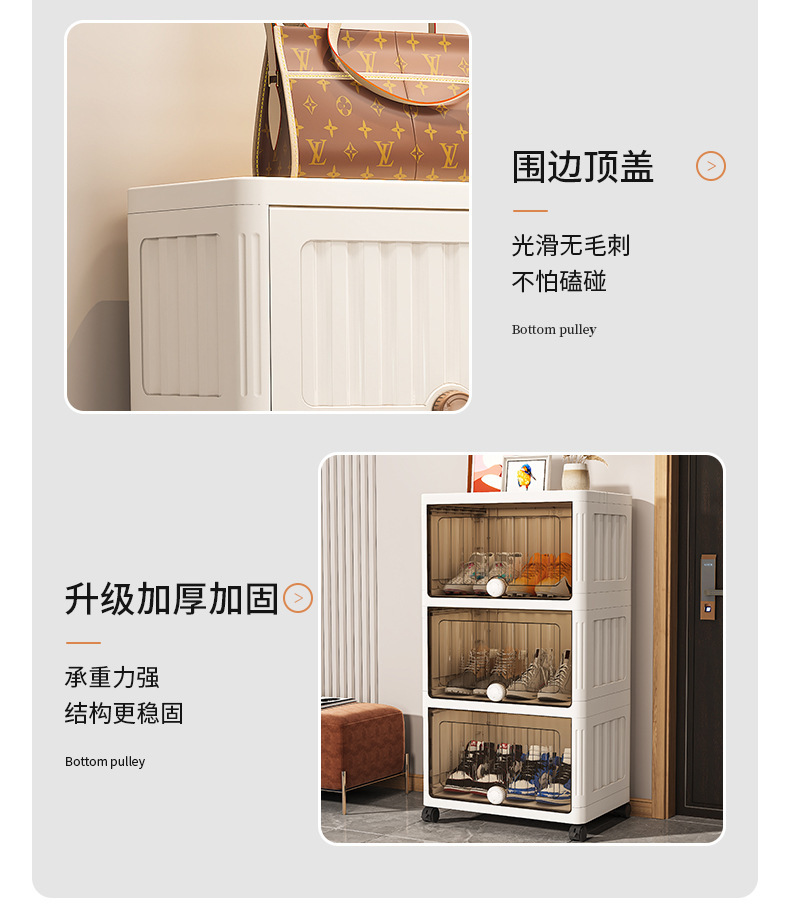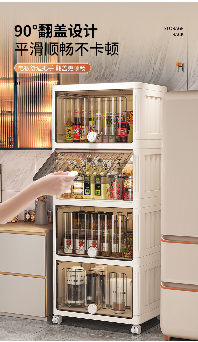 38/48宽旋转把手储物柜落地多层蔬菜零食大容量可移动翻盖收纳柜