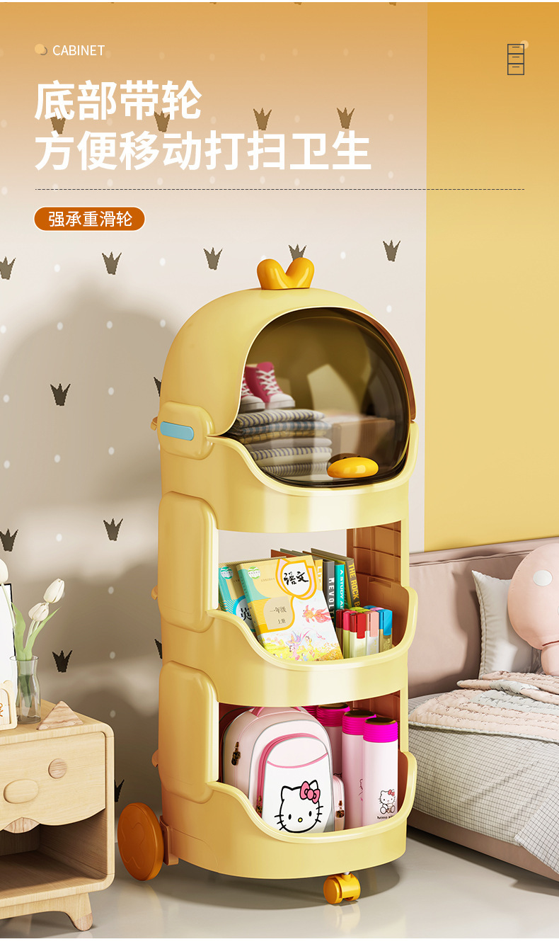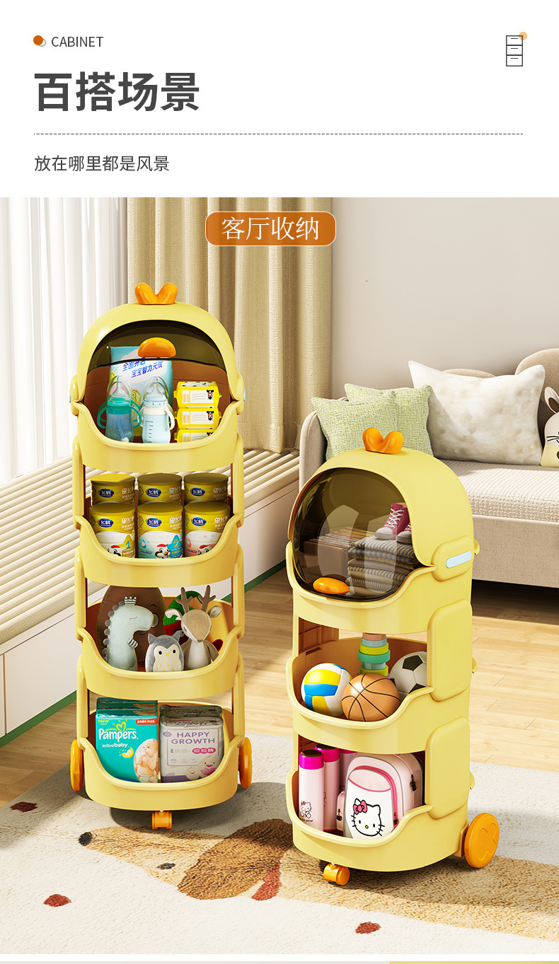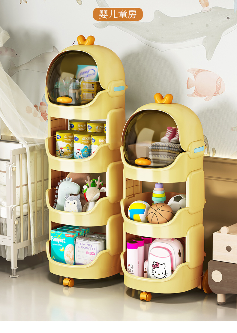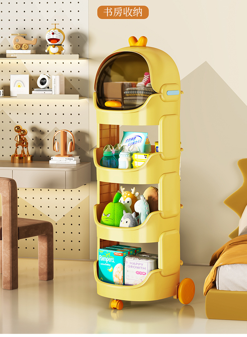 儿童玩具收纳架卡通小推车可移动客厅零食宝宝书架整理多层置物架