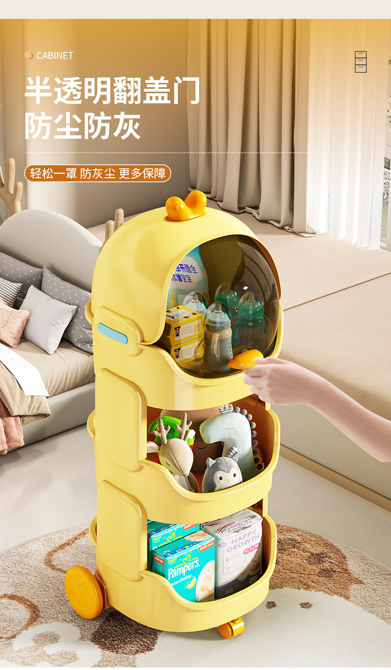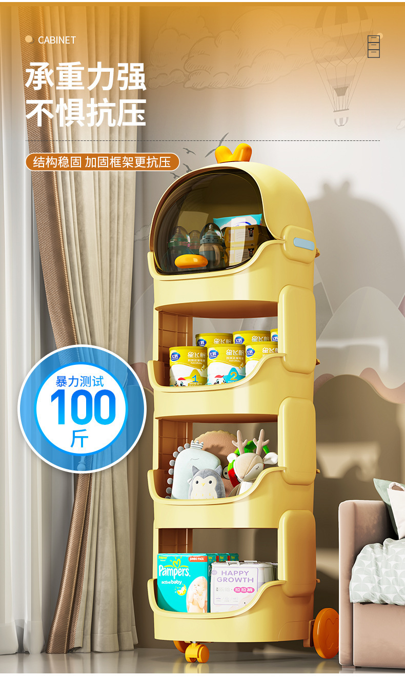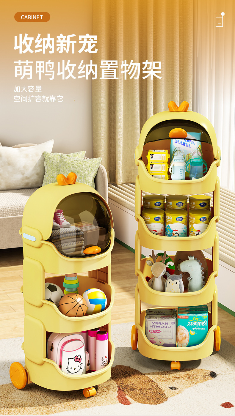 儿童玩具收纳架卡通小推车可移动客厅零食宝宝书架整理多层置物架