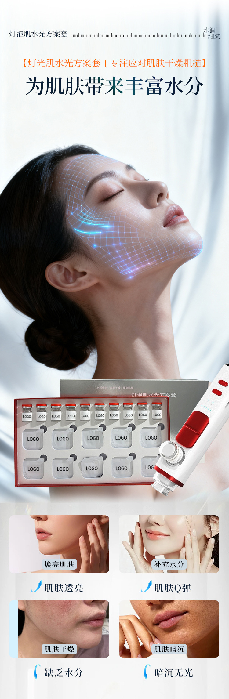 美容院专供水光动能液面部套盒皮肤管理烟酰胺精华液补水保湿浅导