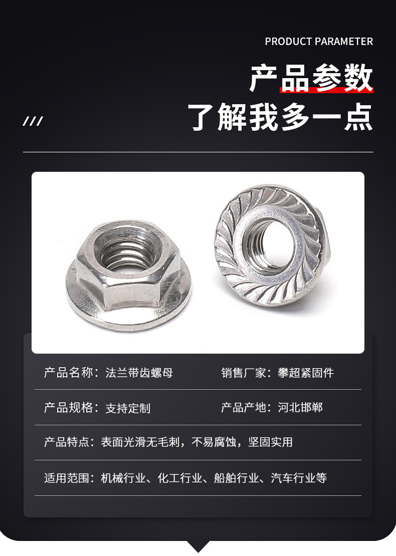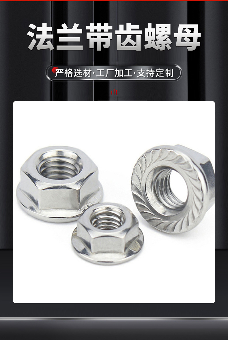 304不锈钢法兰带齿螺母滚花面螺帽防松锁紧螺母六角配套螺丝帽件