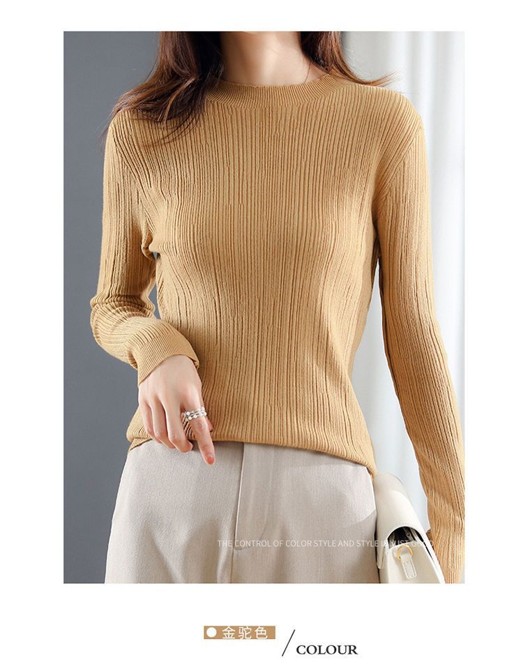 秋冬款苞芯纱羊毛混纺针织打底衫女款竖细纹圆领修身百搭长袖上衣,批发价,价格:26,厂家直销,秋冬款苞芯纱羊毛混纺针织打底衫女款竖细纹圆领修身百搭长袖上衣,免费拿样。