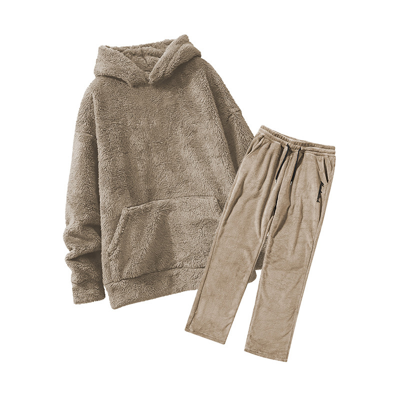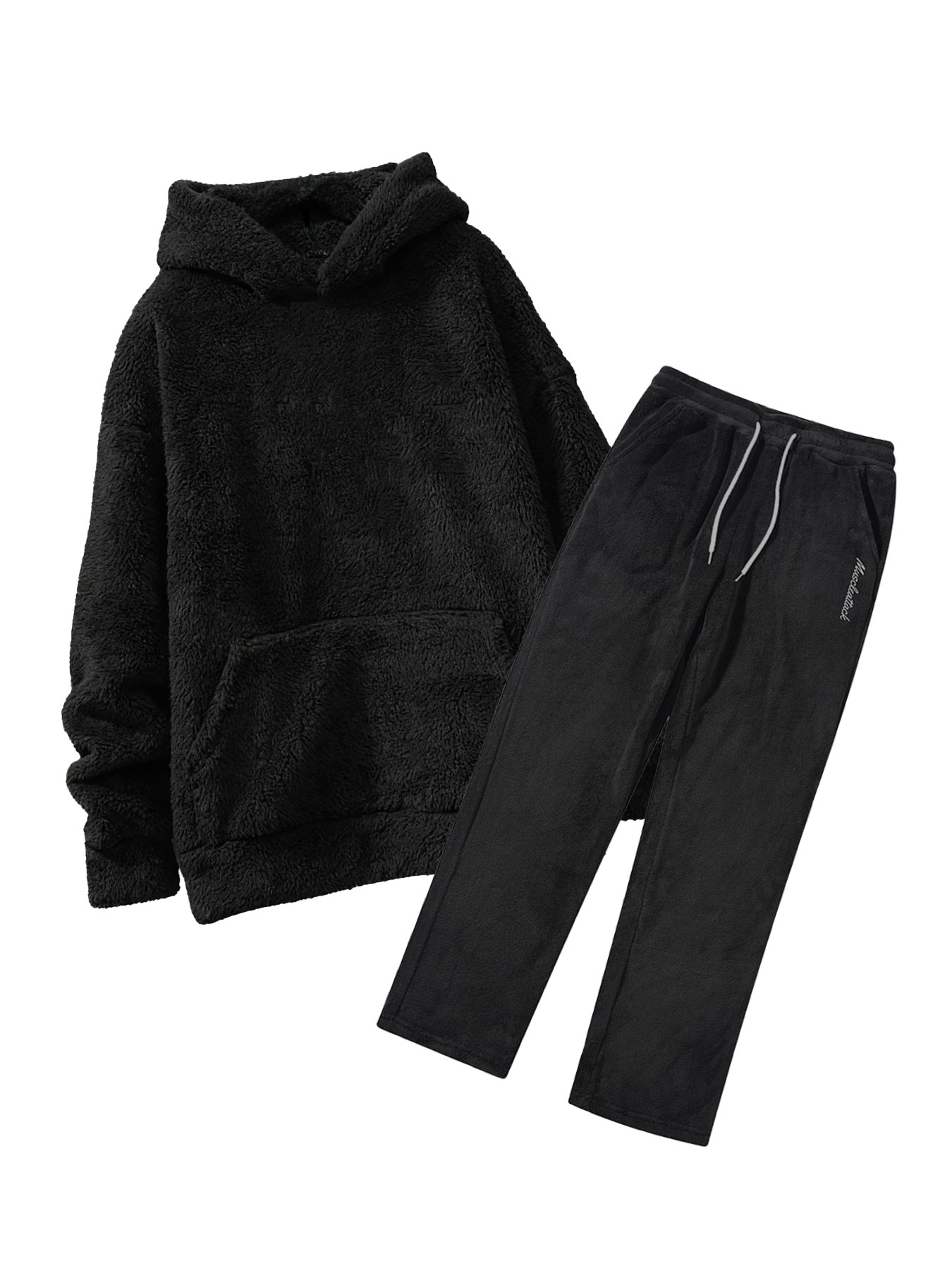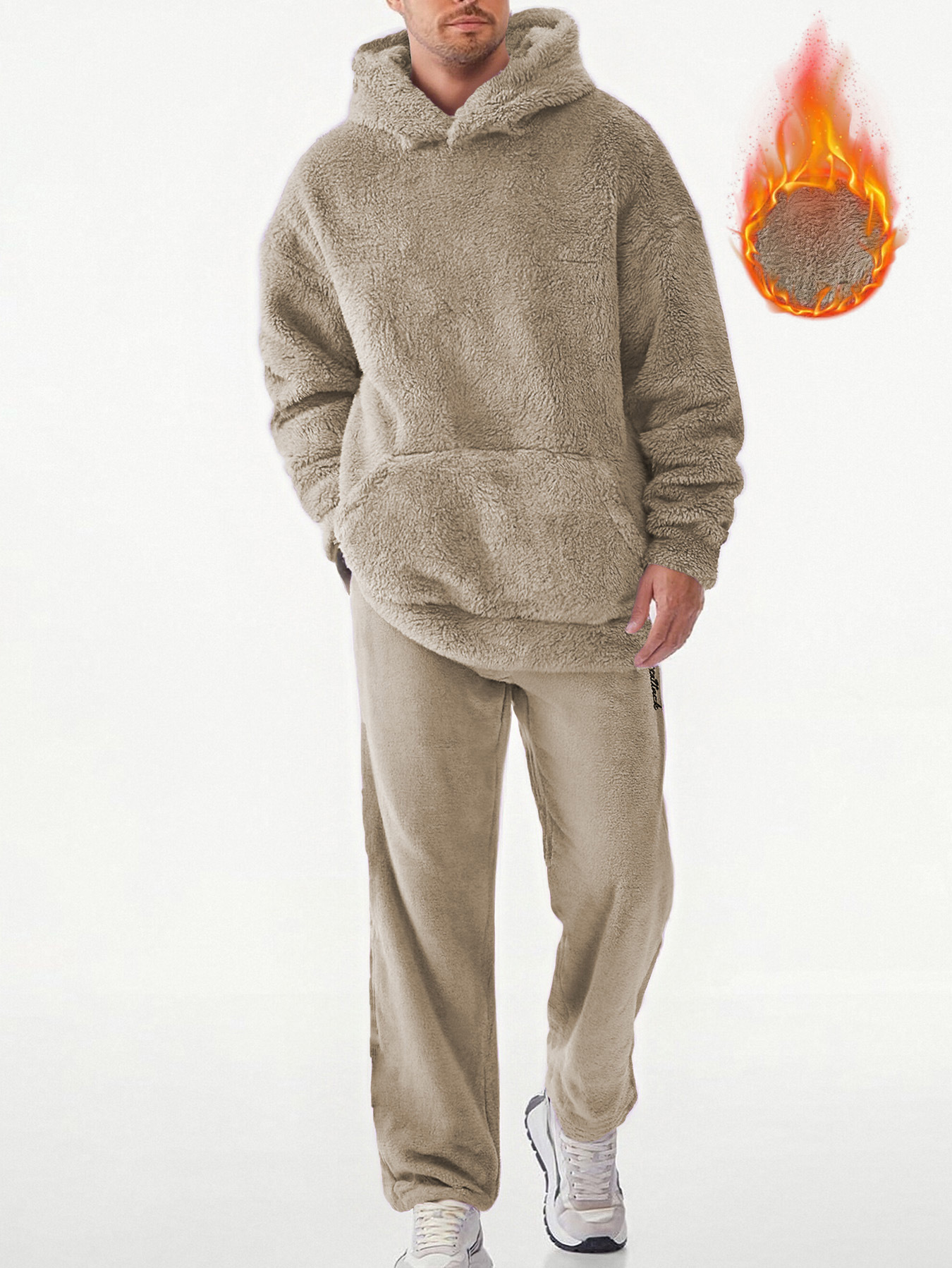 男士卫衣秋冬新款外贸跨境外连帽休闲宽松时尚个性卫衣珊瑚绒套装