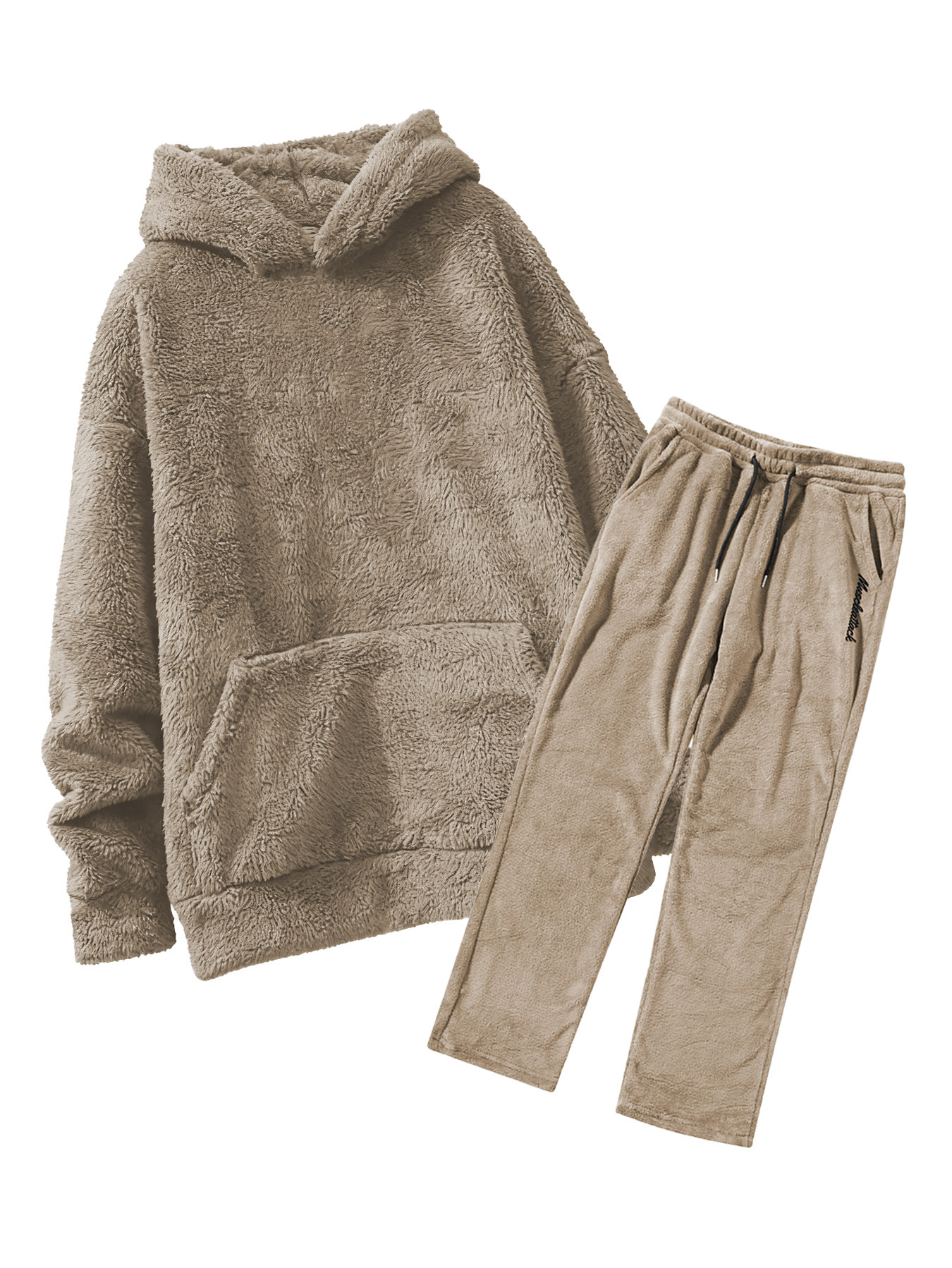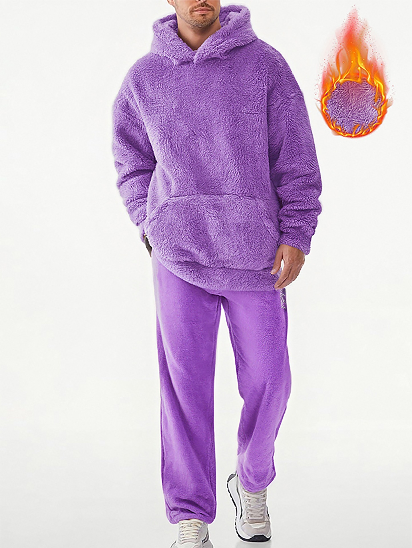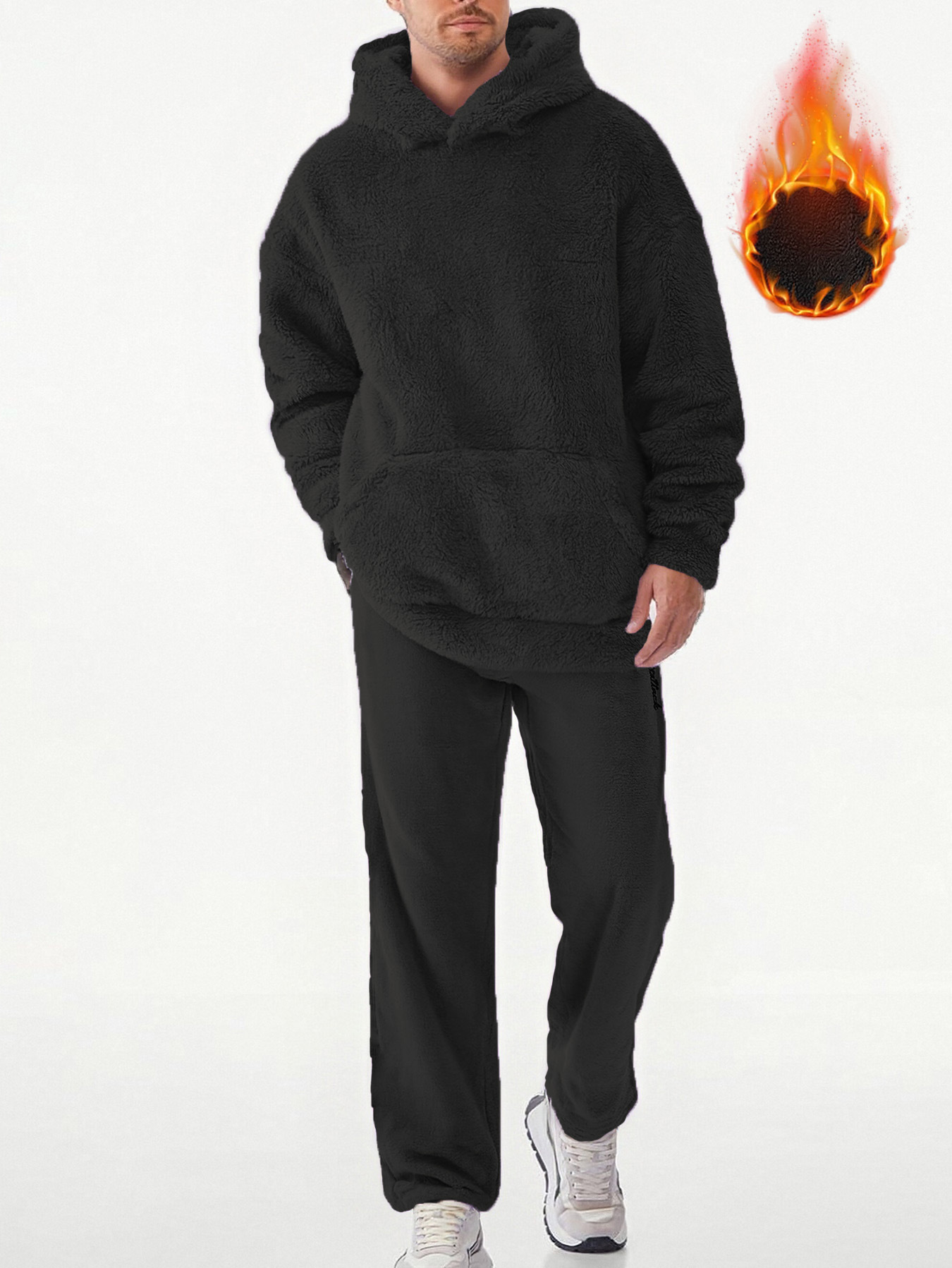 男士卫衣秋冬新款外贸跨境外连帽休闲宽松时尚个性卫衣珊瑚绒套装