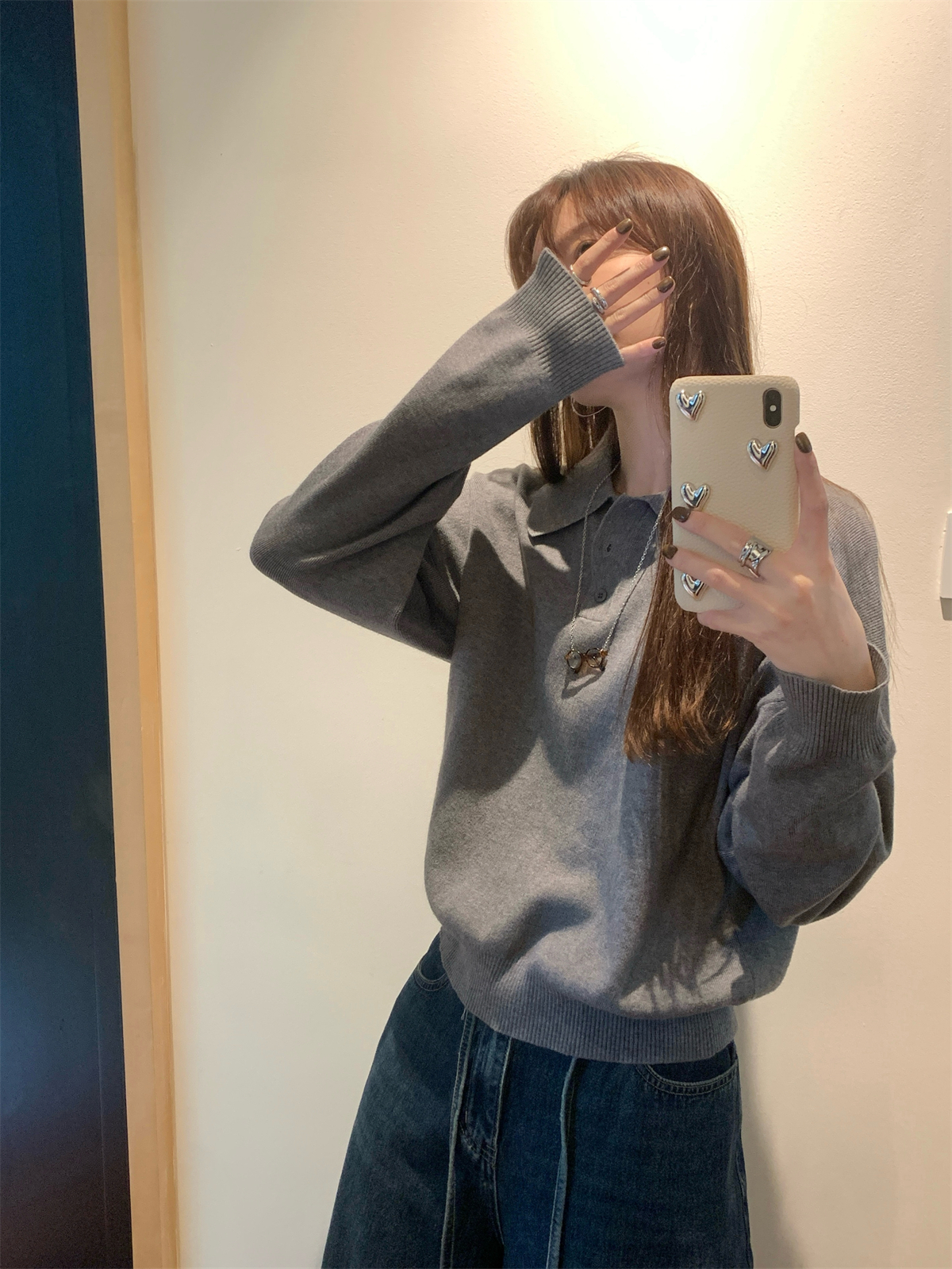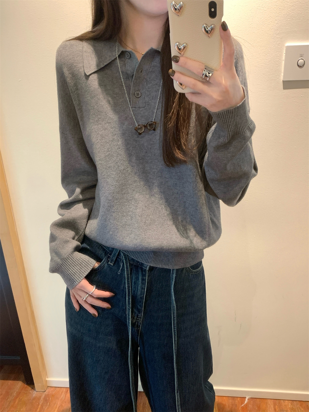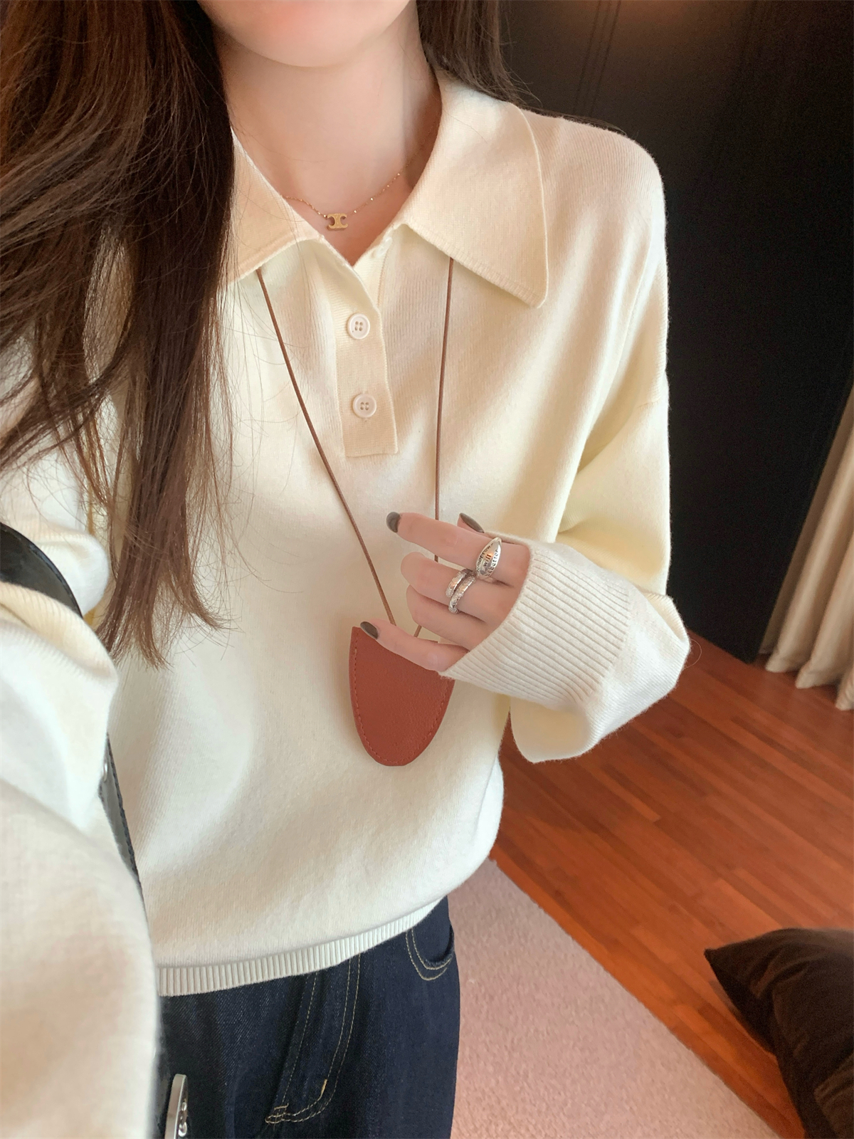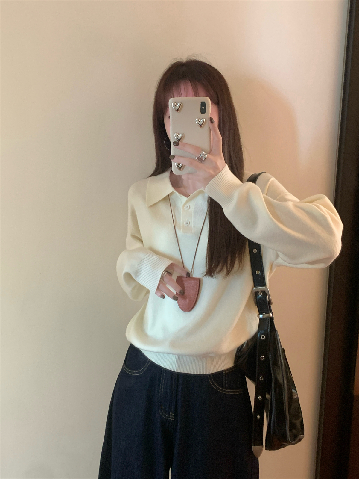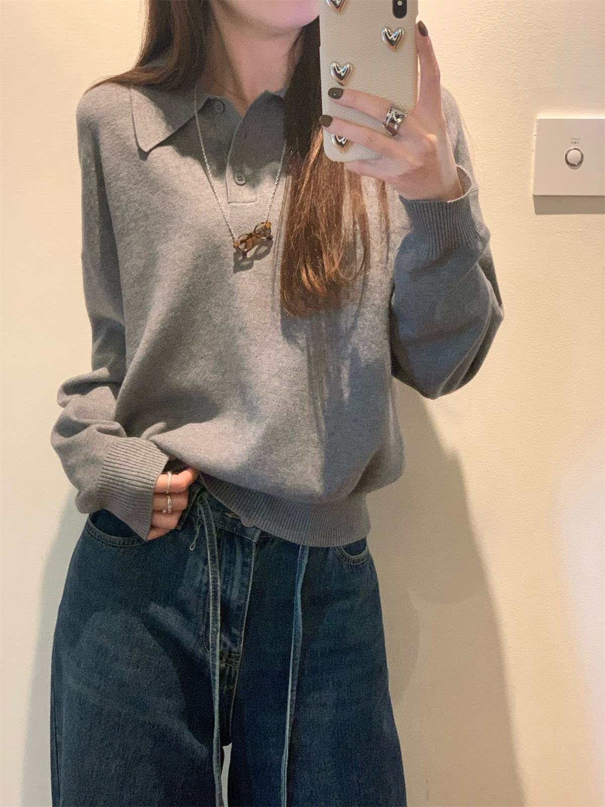 韩系polo领松弛感针织毛衣女春秋冬季简约慵懒打底衫宽松内搭衣