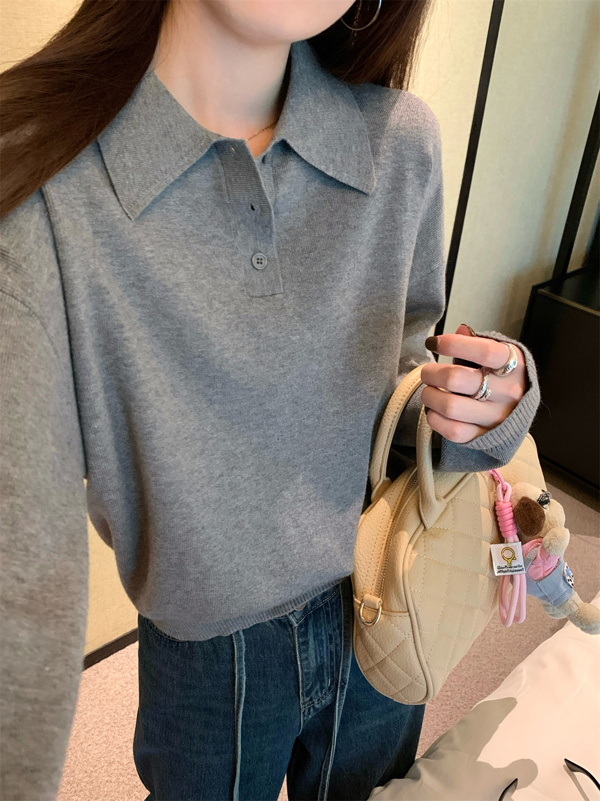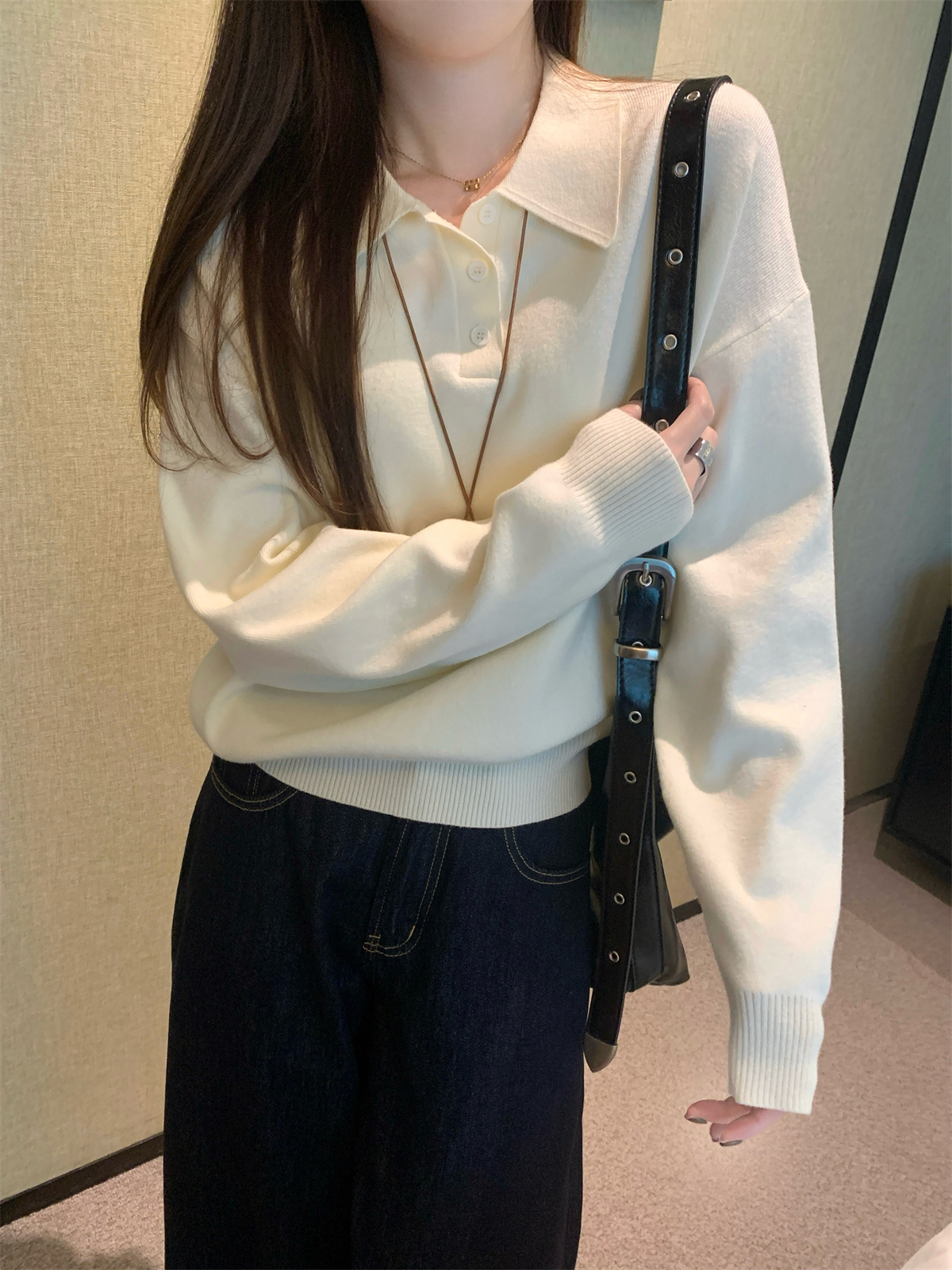 韩系polo领松弛感针织毛衣女春秋冬季简约慵懒打底衫宽松内搭衣,批发价,价格:28.9,厂家直销,韩系polo领松弛感针织毛衣女春秋冬季简约慵懒打底衫宽松内搭衣,免费拿样。