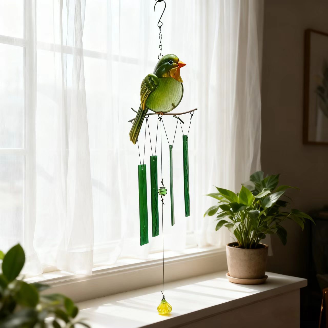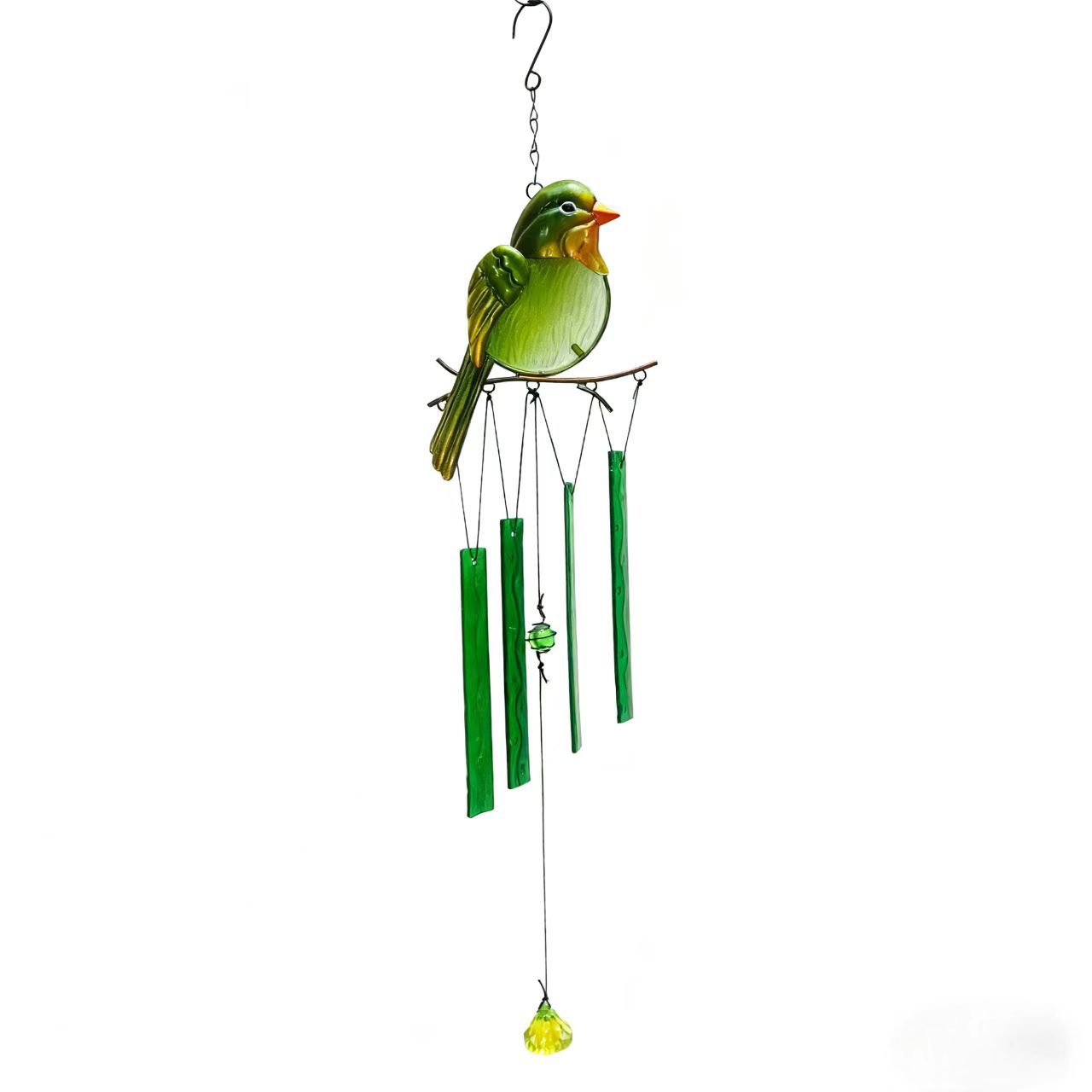 跨境新品小鸟金属铁艺风铃玻璃彩绘挂件工艺品挂饰庭院阳台装饰