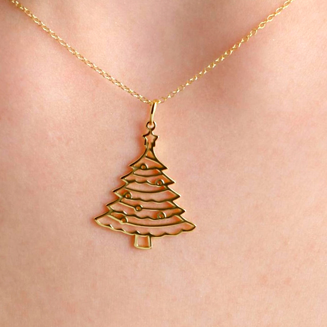 圣诞树造型吊坠锁骨链