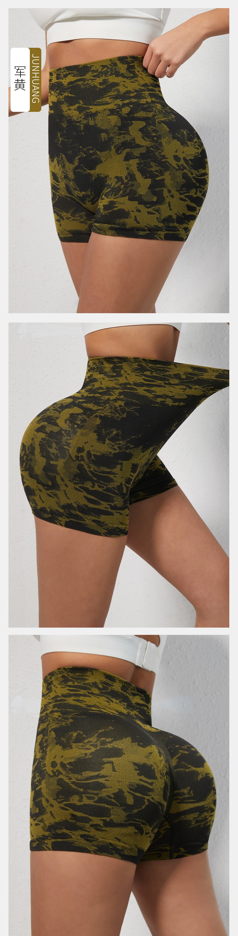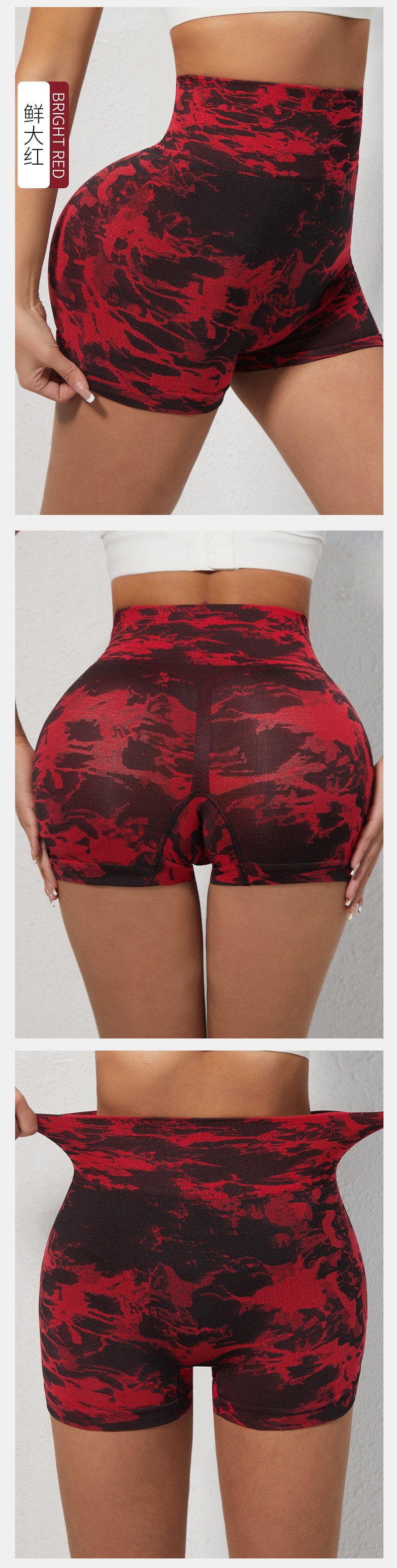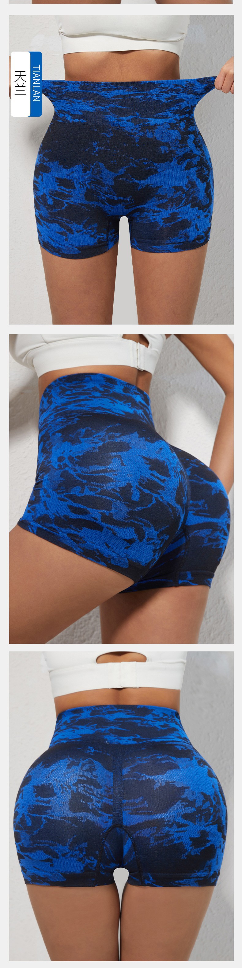 亚马逊TK无缝高腰提臀性感扎染印花运动健身蜜桃修身瑜伽短裤女