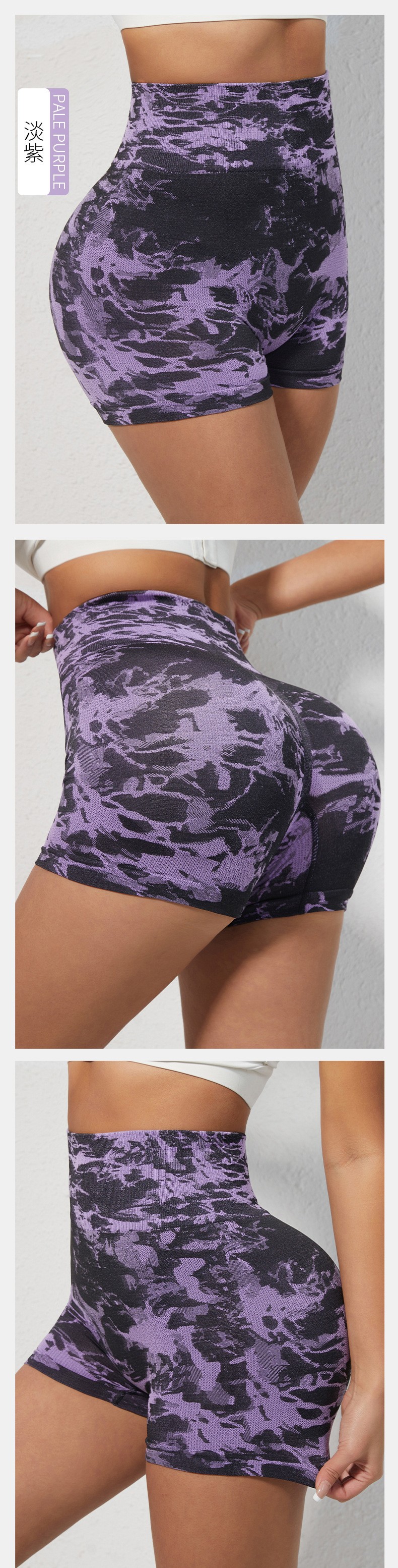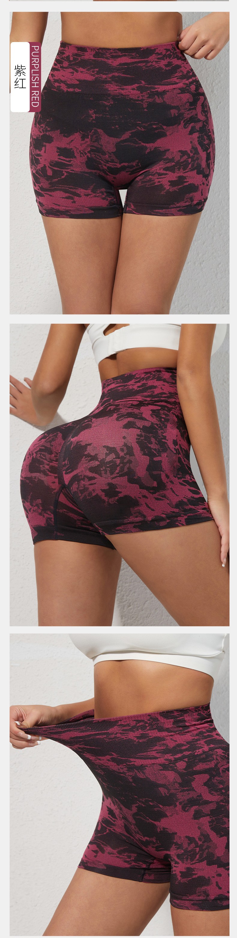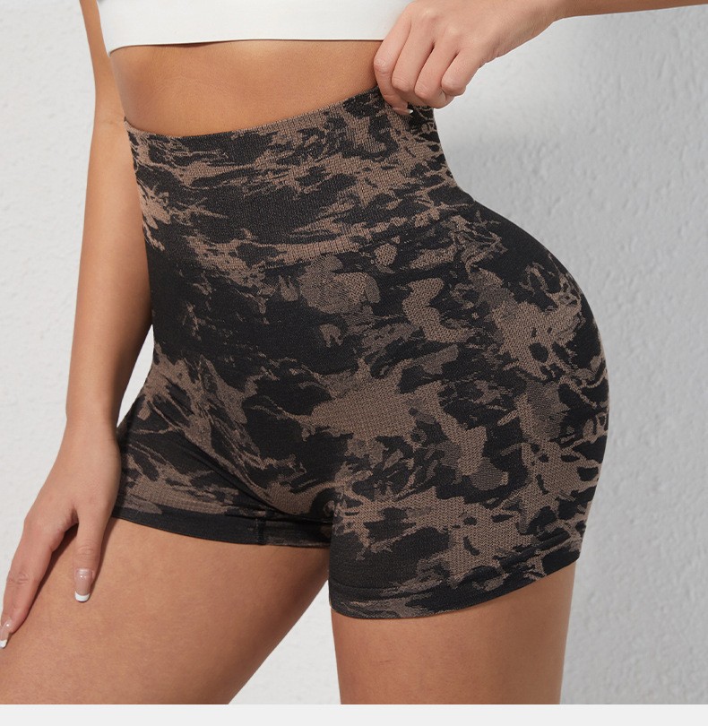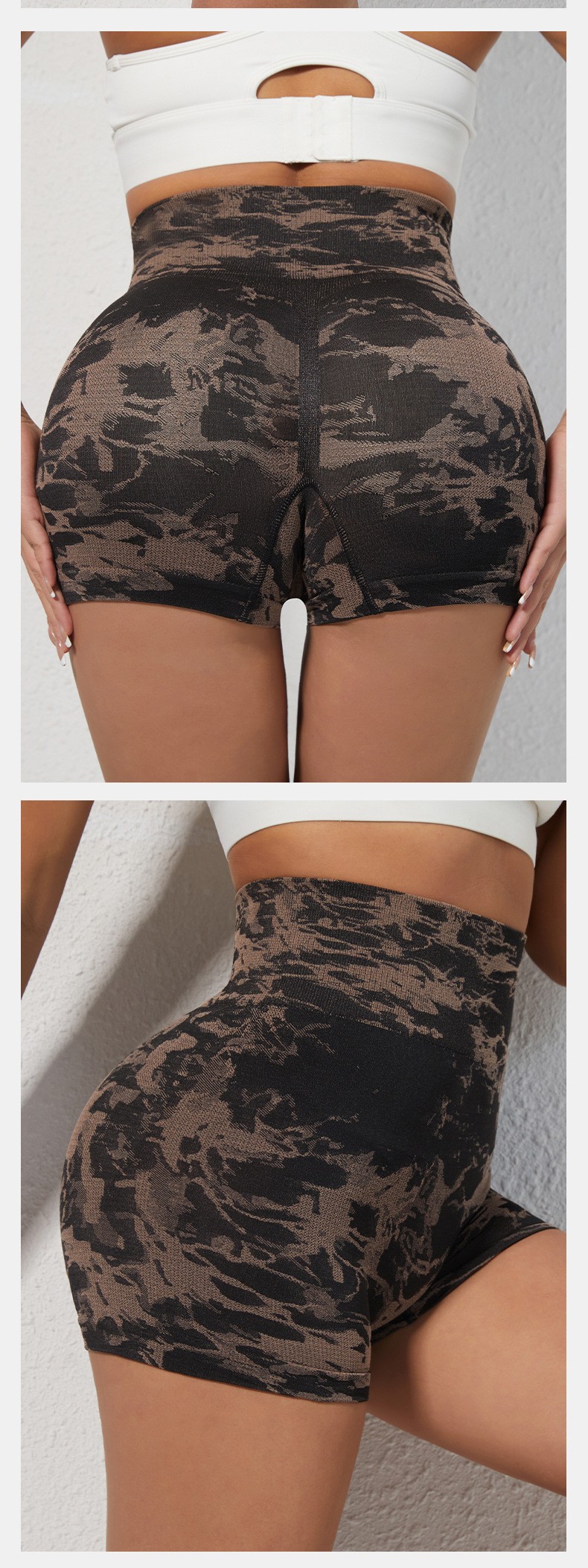 亚马逊TK无缝高腰提臀性感扎染印花运动健身蜜桃修身瑜伽短裤女