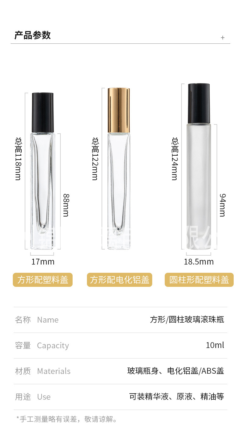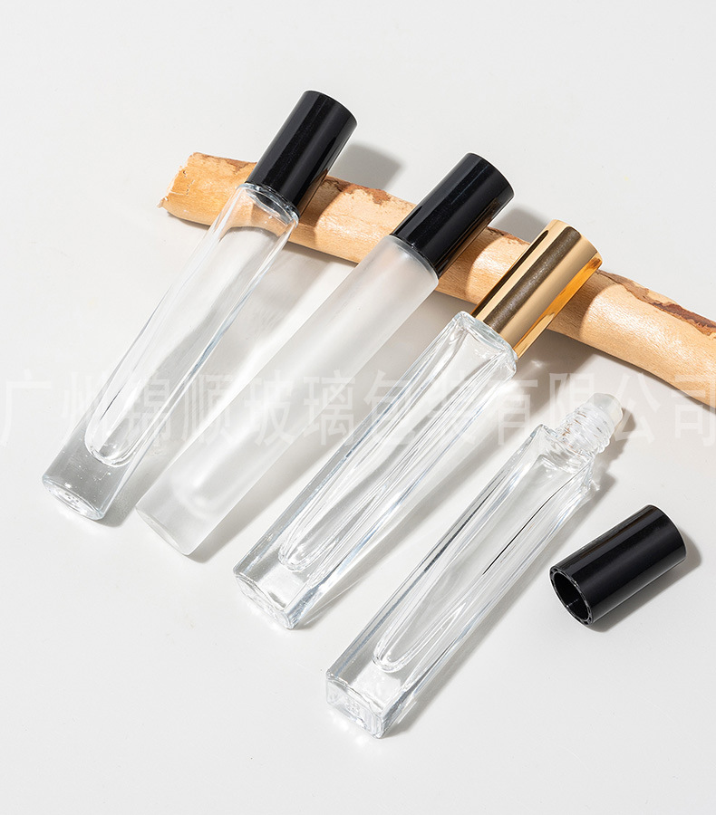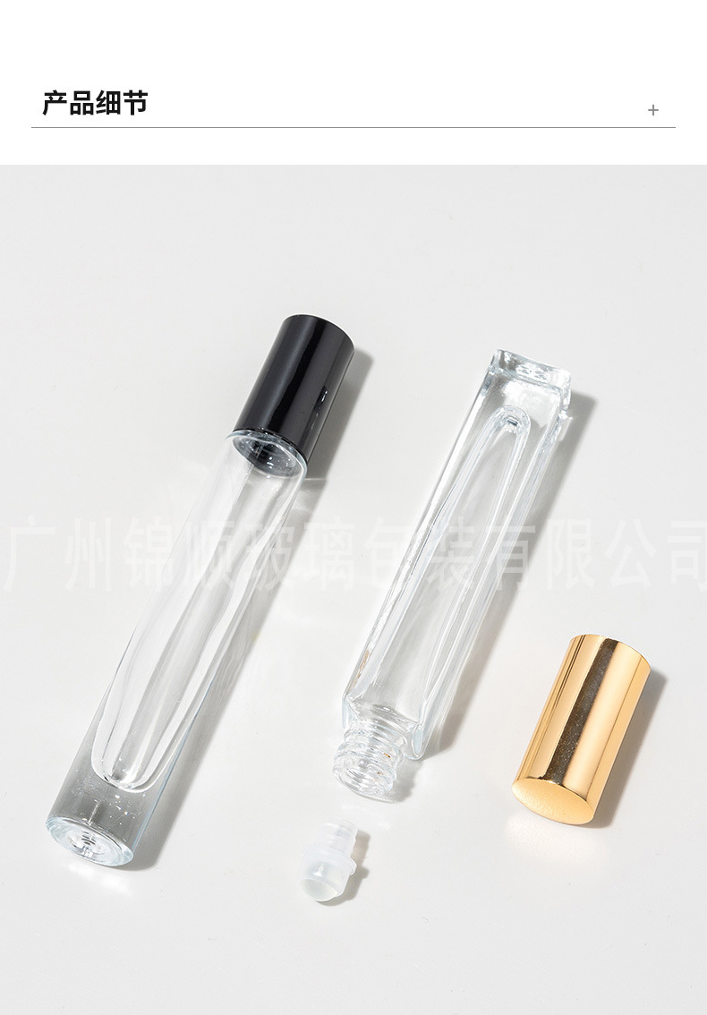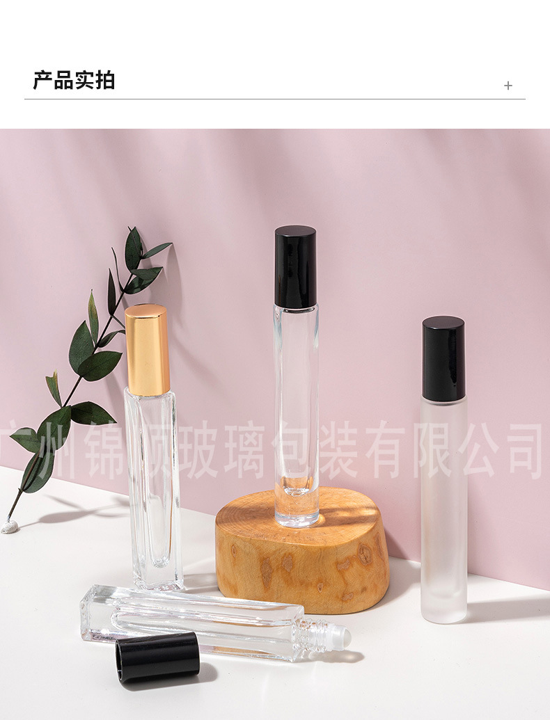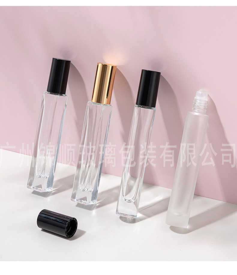 现货10ml透明按摩走珠瓶 细长圆形精油滚珠瓶 方形香水玻璃分装瓶