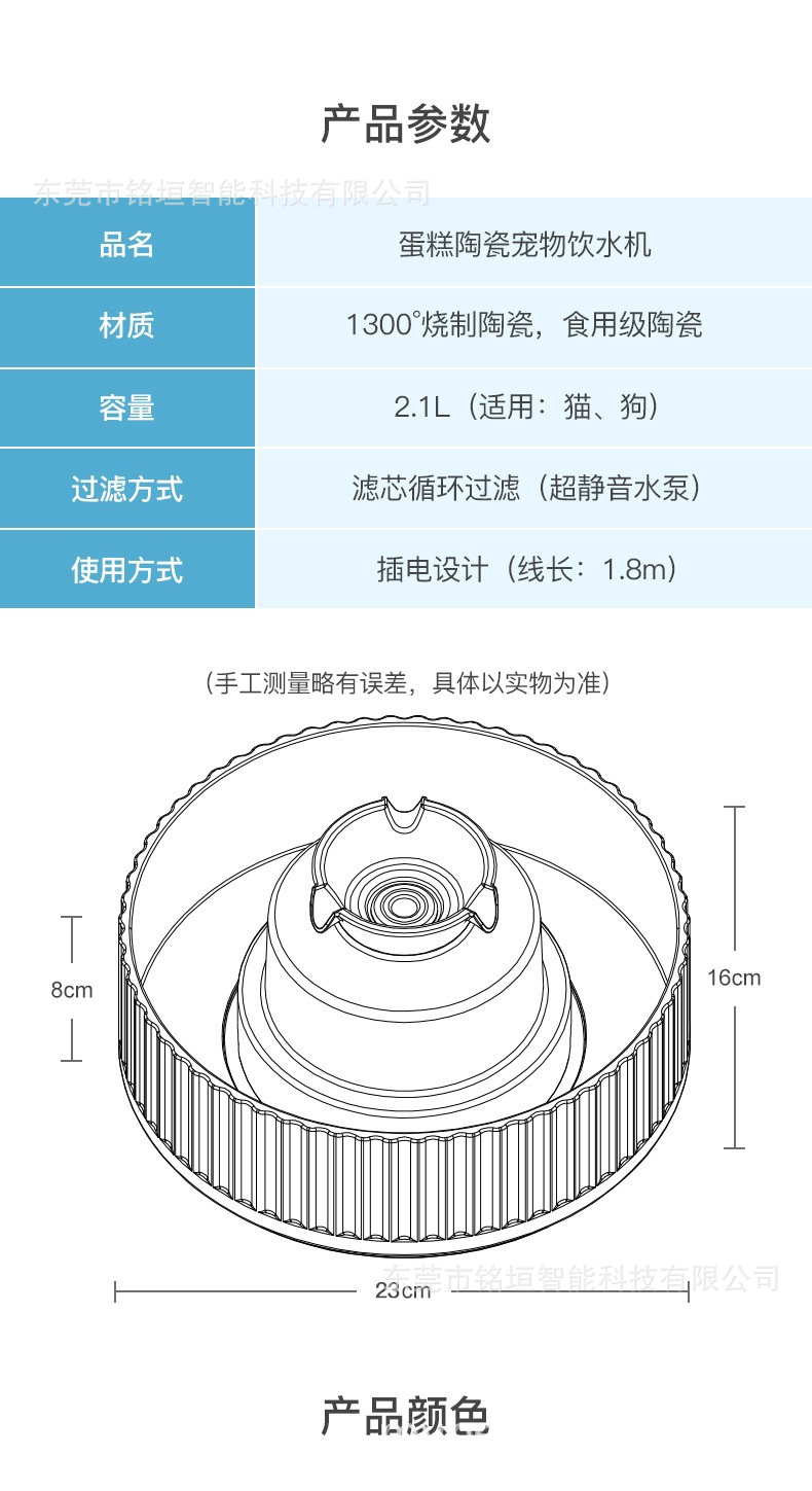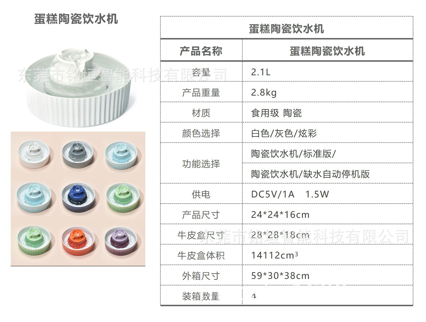 蛋糕陶瓷-宠物饮水机猫咪狗狗水盆自动循环电动喂水器喷泉饮水器