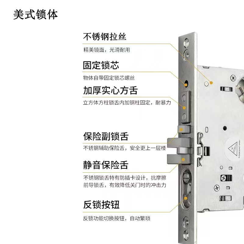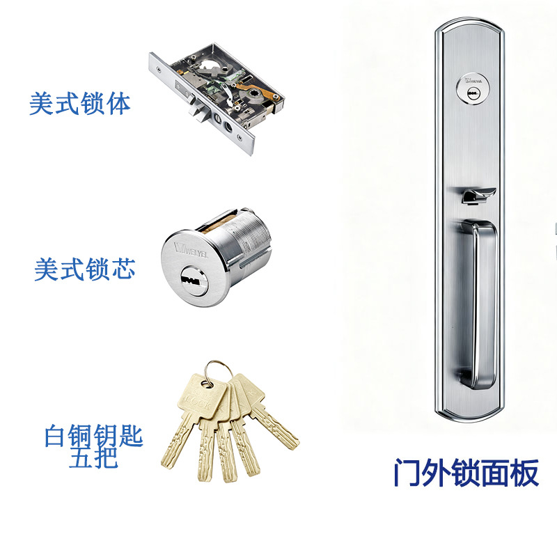 工厂不锈钢门锁机械防盗门锁家用SUS304美式豪华防盗门锁机械锁