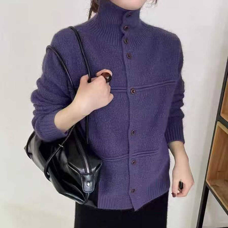 韩版半高领单排扣针织开衫女秋冬新款洋气设计感软糯短款毛衣外套,批发价,价格:52,厂家直销,韩版半高领单排扣针织开衫女秋冬新款洋气设计感软糯短款毛衣外套,免费拿样。