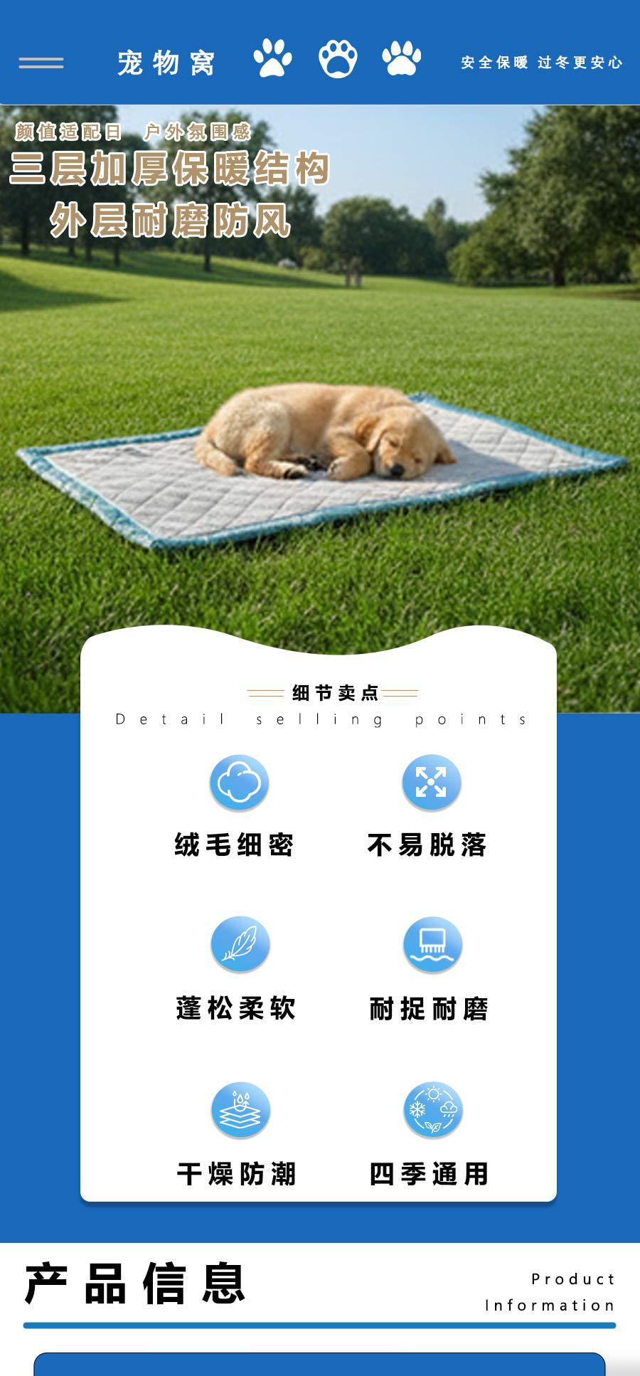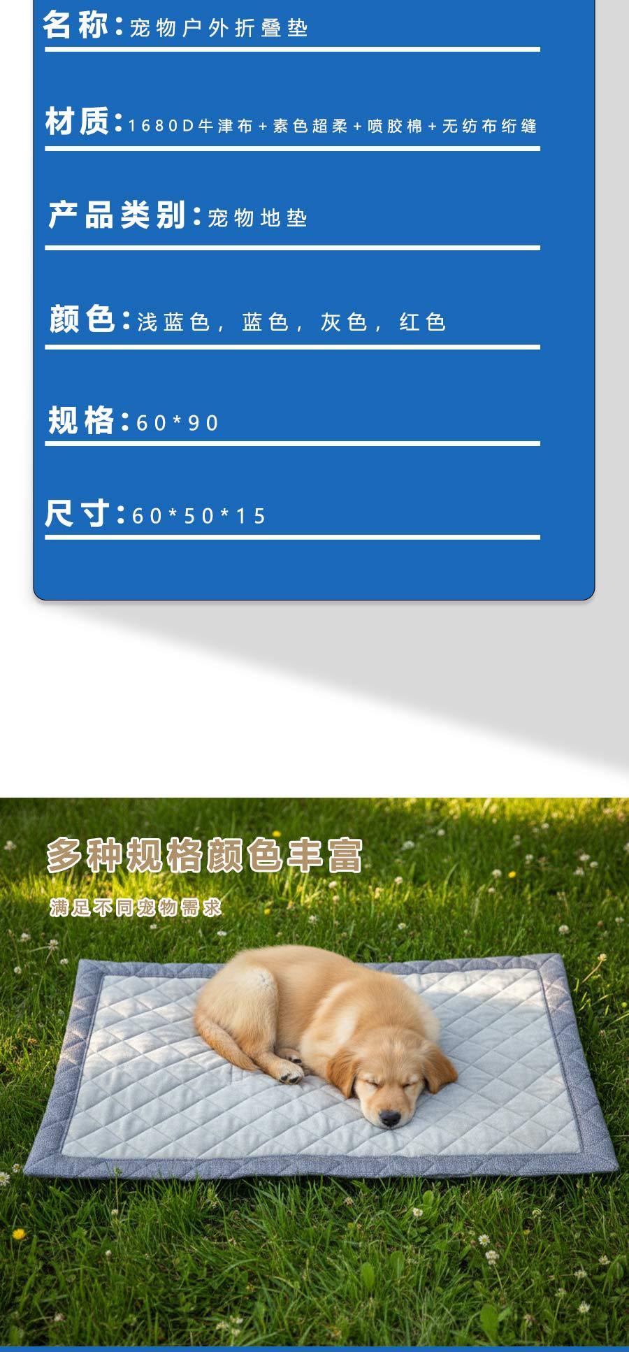 厂家定制狗垫猫狗防水宠物垫防滑狗窝垫子户外可折叠大型犬夹棉垫