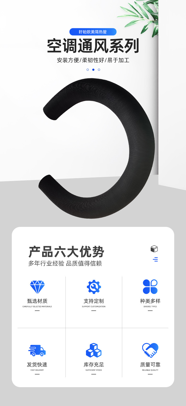 推荐理由:厂家批发空调通风系列 可任意弯曲韧性好圆形通风保温管道风管
