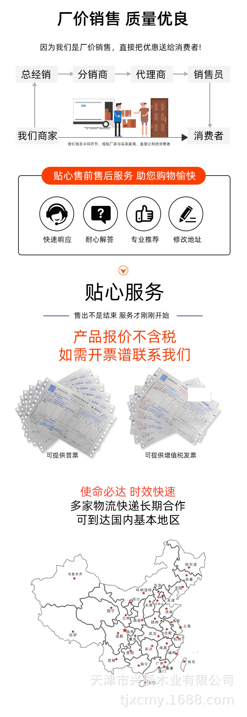 推荐理由:天津市兴辰木业有限公司创建于1993年,公司位于天津京津公路旁,环境优美,交通便利。经过几十年的拼搏,现已发展为占地面积30000㎡,烘干热处理窑三个,容积约1100立方米,厂内储存木材存量可达500
