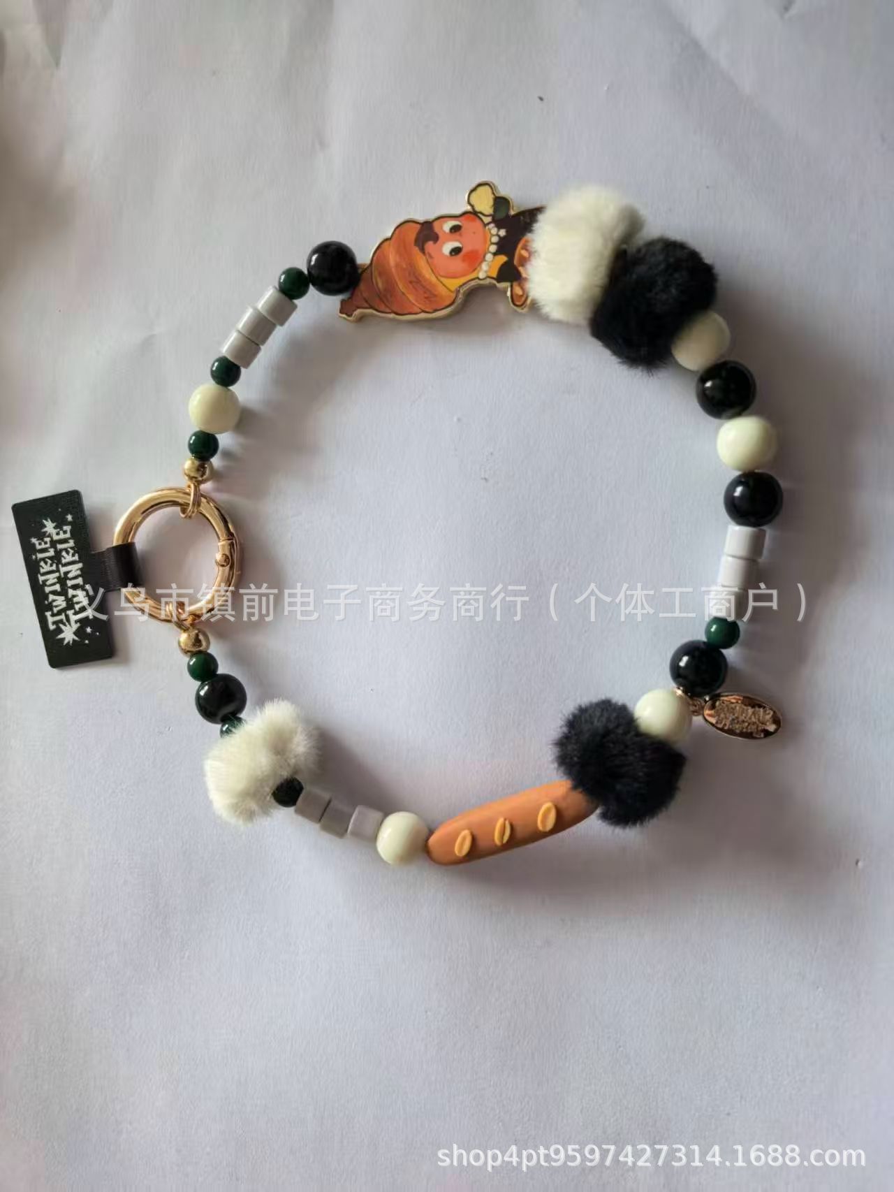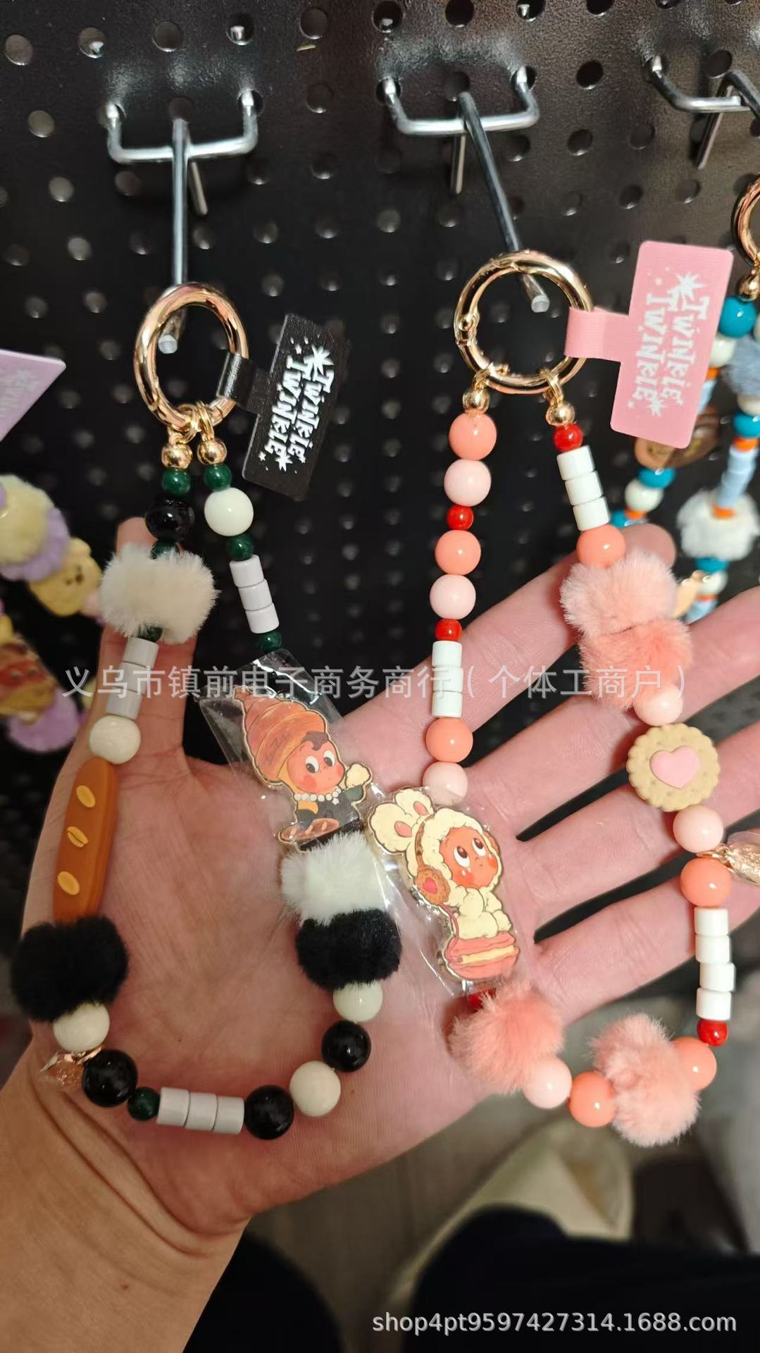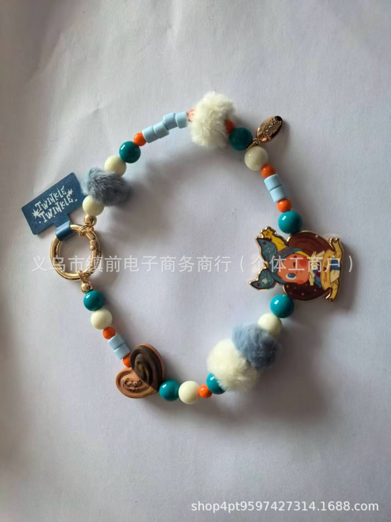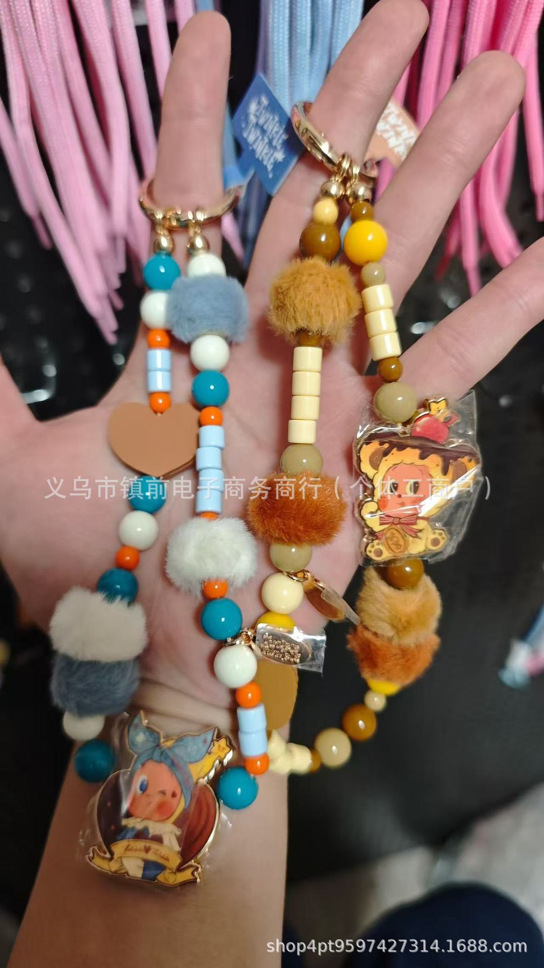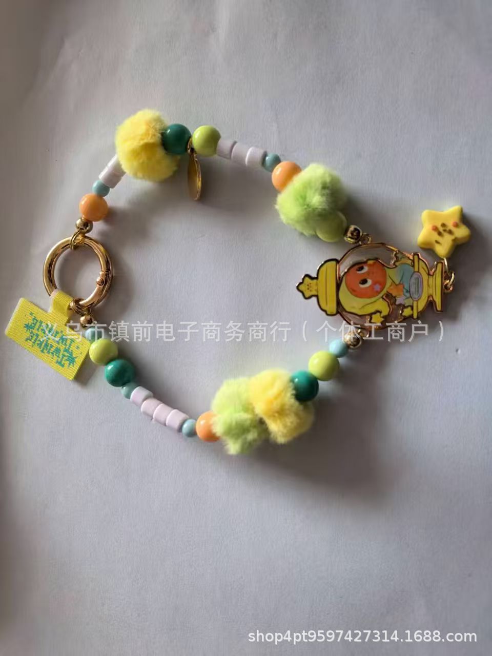 创意diy星星人公仔毛球串珠手机链条玩偶挂件手工包包钥匙扣挂饰