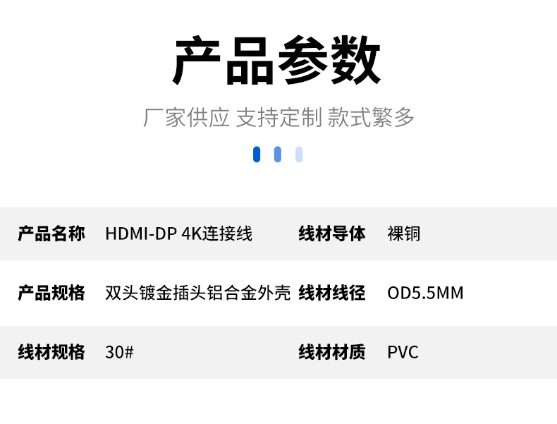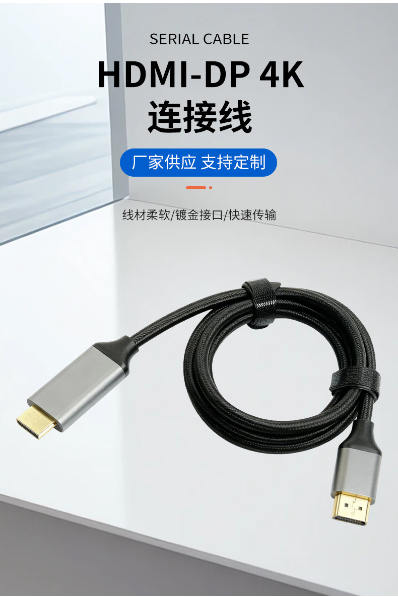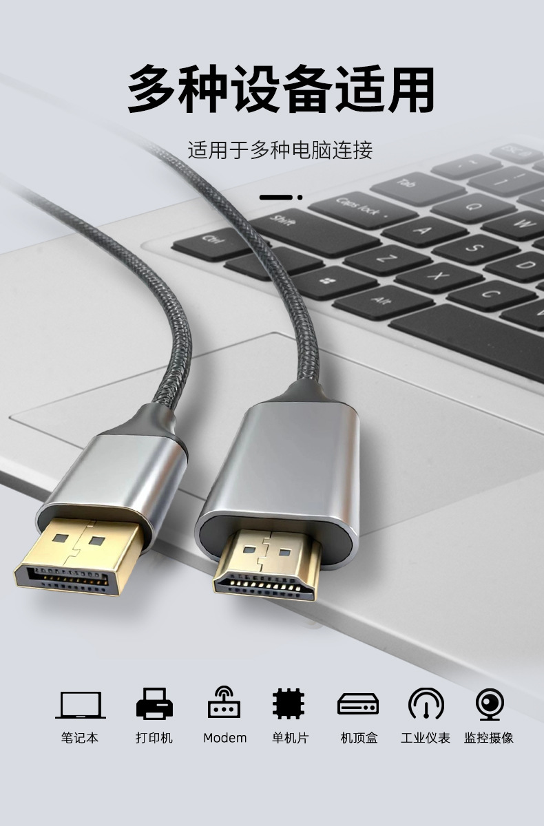 HDMI-DP4K连接线双头镀金插头铝合金外壳厂家供应4K60HzDP转60HZ