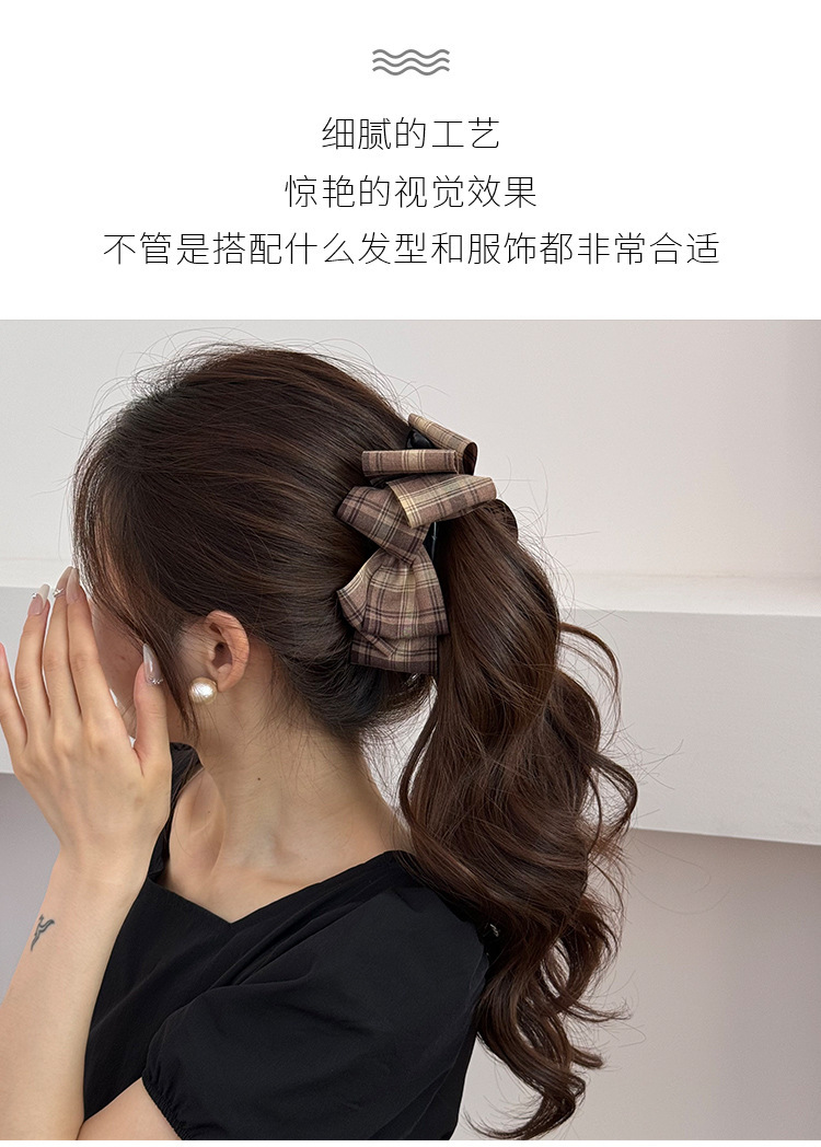 2025年新款英伦风复古经典格纹香蕉夹女气质竖夹高马尾圆头后脑勺