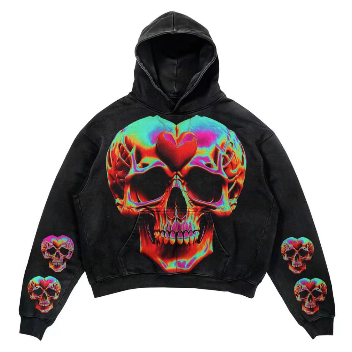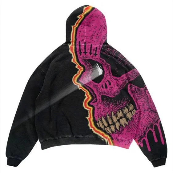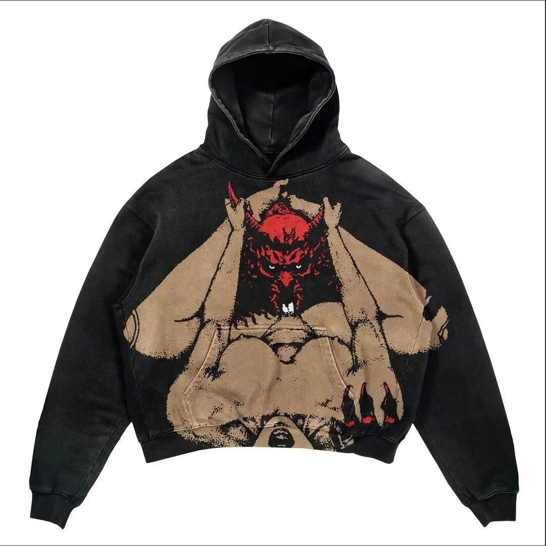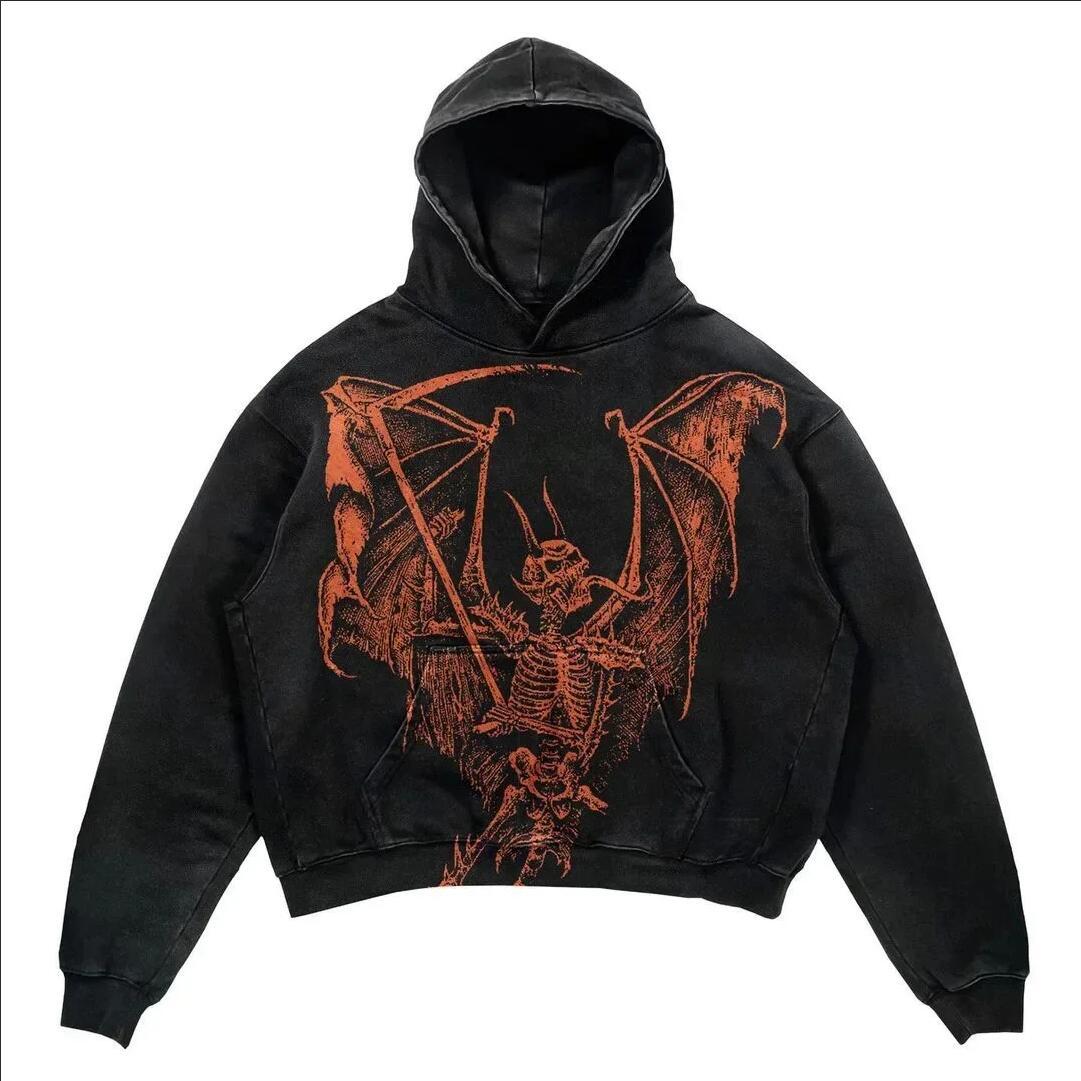 哥特风3D印花连帽卫衣男装街头时尚嘻哈原宿宽松休闲运动男士外套