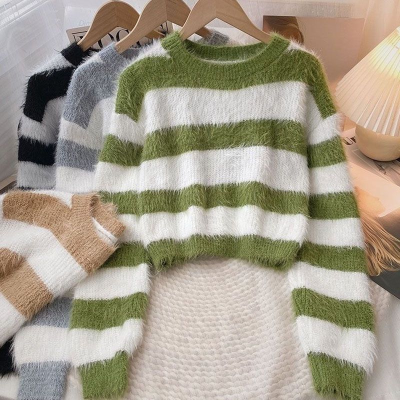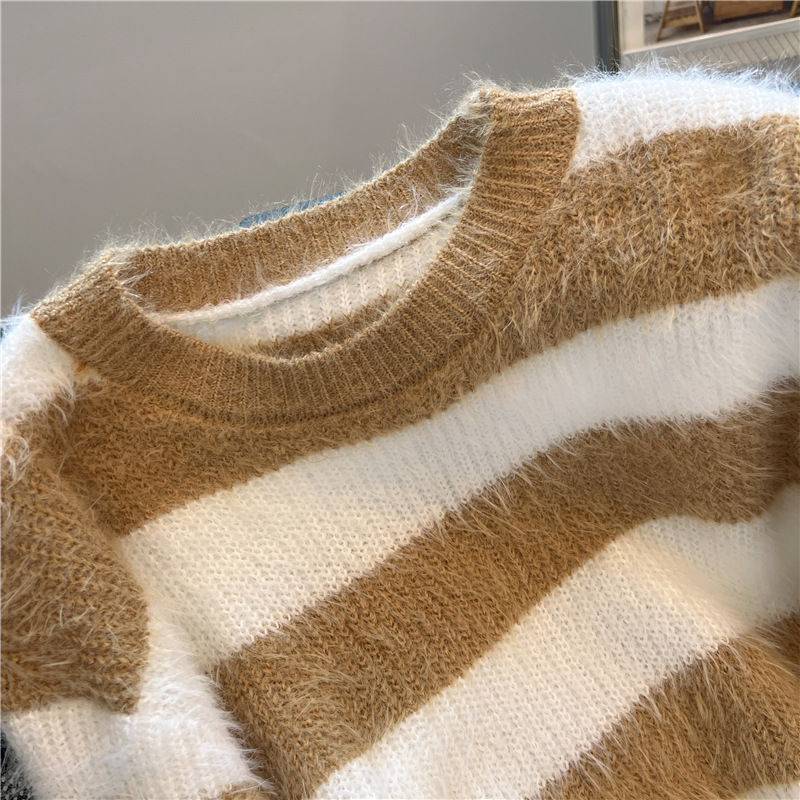 实拍~软糯水貂毛条纹毛衣女秋冬季圆领套头短款针织衫宽松上衣潮,批发价,价格:28.9,厂家直销,实拍~软糯水貂毛条纹毛衣女秋冬季圆领套头短款针织衫宽松上衣潮,免费拿样。