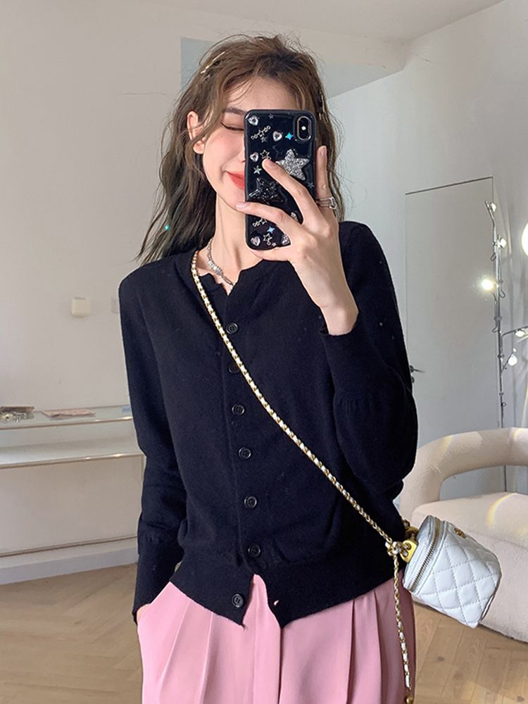 软糯亲肤薄款羊毛针织开衫女韩版V领宽松短款小外搭毛衣外套上