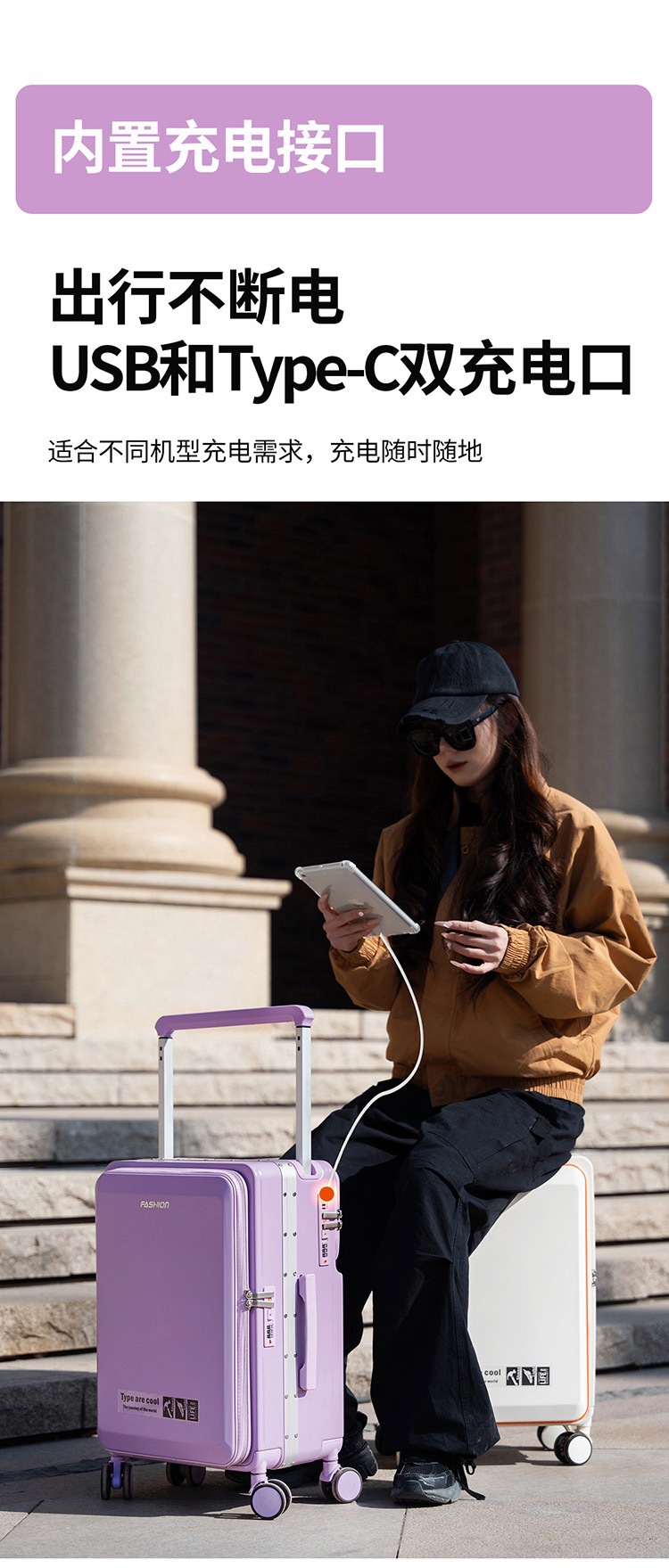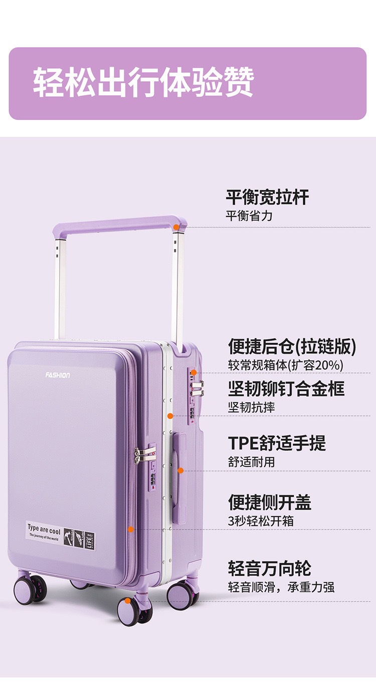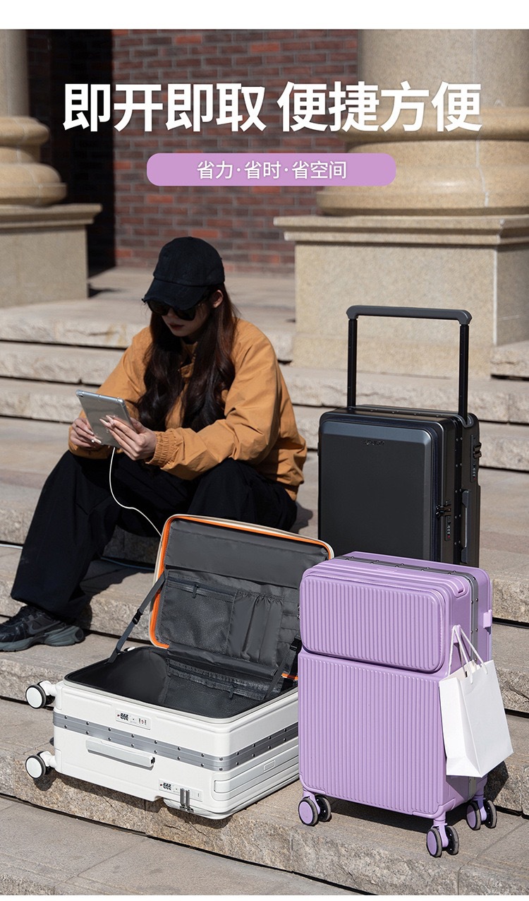 20寸一九开登机旅行箱侧开盖密码行李箱可扩容拉杆箱大容量高颜值