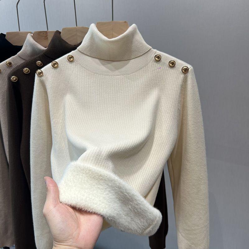 一体绒加绒高领打底衫女秋冬洋气2025新款加厚修身毛衣内搭打底