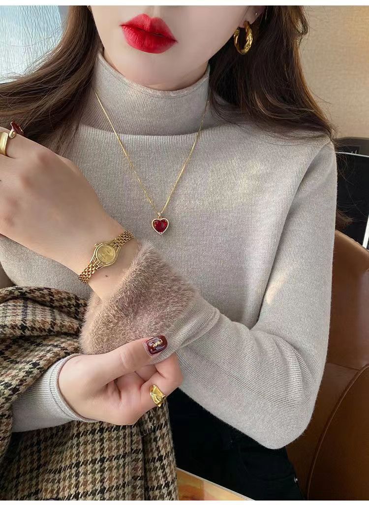 半高领一体绒打底衫毛衣女内搭冬季新款加绒加厚卷边针织衫毛衣,批发价,价格:30.9,厂家直销,半高领一体绒打底衫毛衣女内搭冬季新款加绒加厚卷边针织衫毛衣,免费拿样。