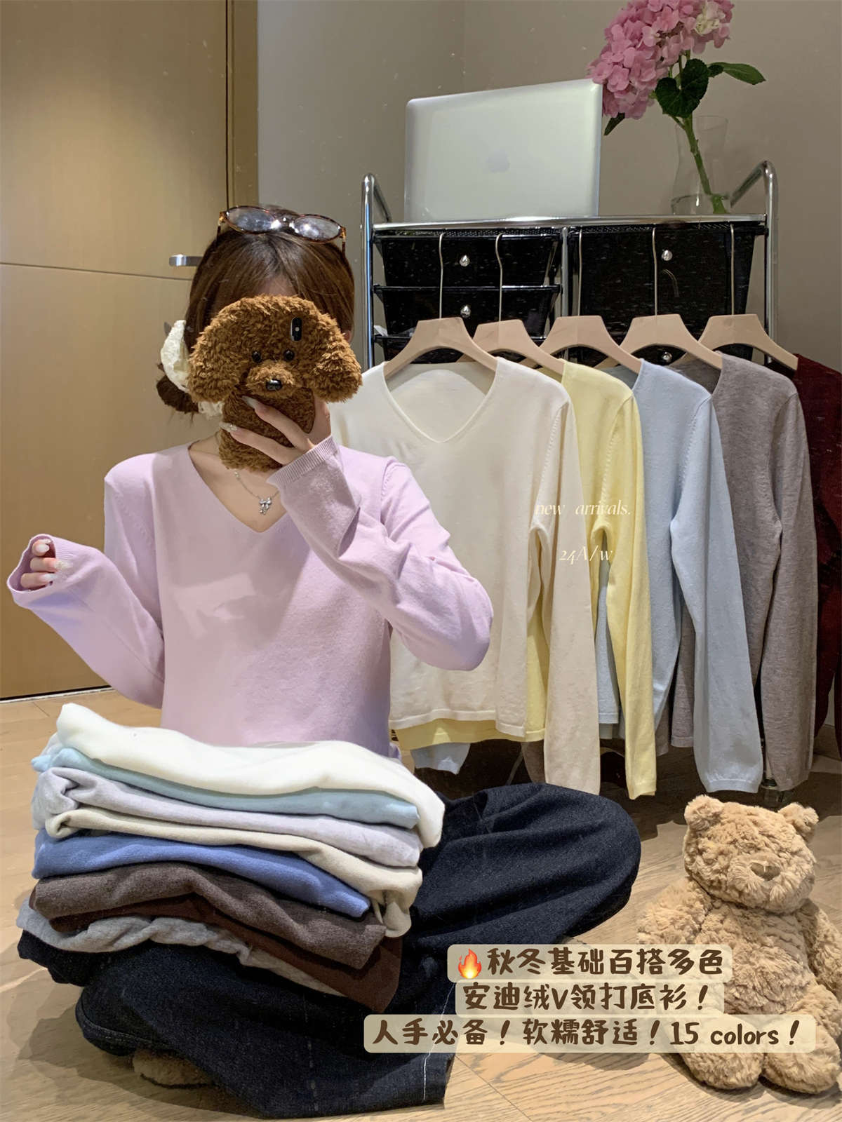实拍 2026秋冬韩版v领宽松15色基础百搭安迪绒长袖针织打底衫上衣,批发价,价格:24.9,厂家直销,实拍 2026秋冬韩版v领宽松15色基础百搭安迪绒长袖针织打底衫上衣,免费拿样。