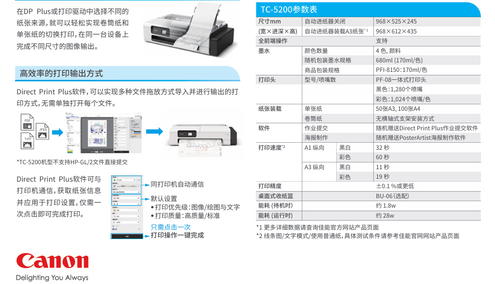 绘图仪佳能canontc-5200/5200m/5210/5210M A1 4色彩色打印机