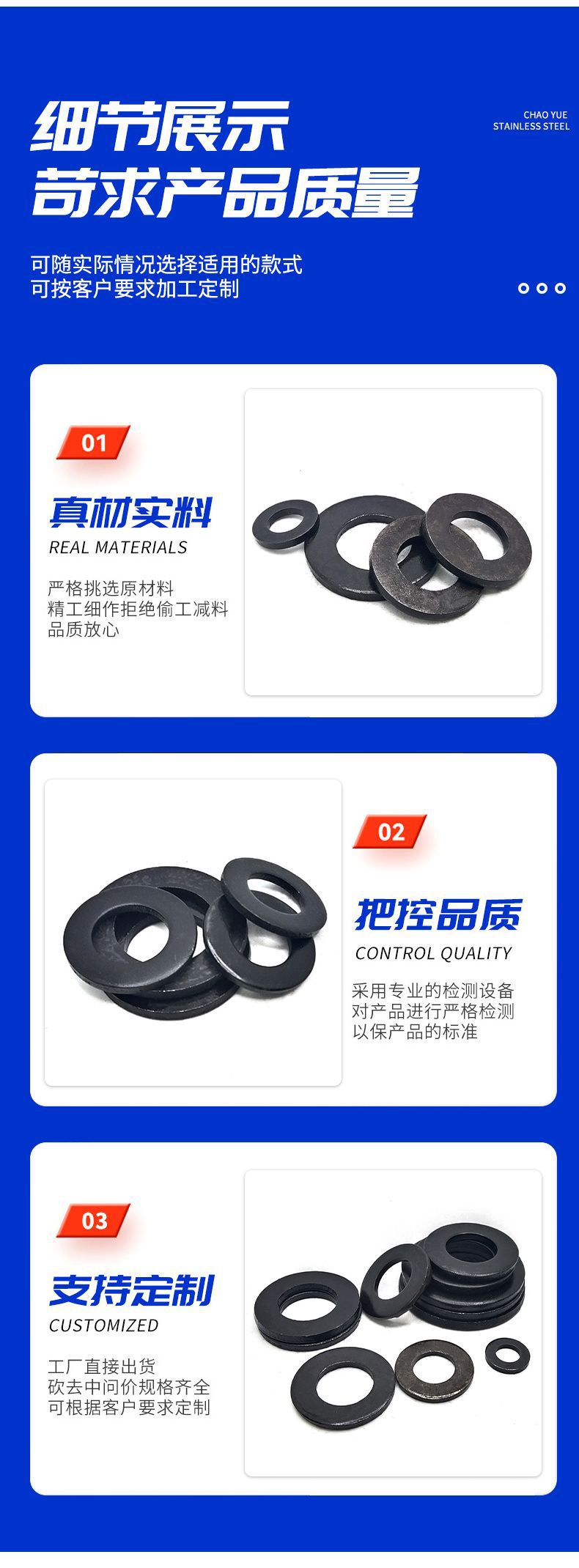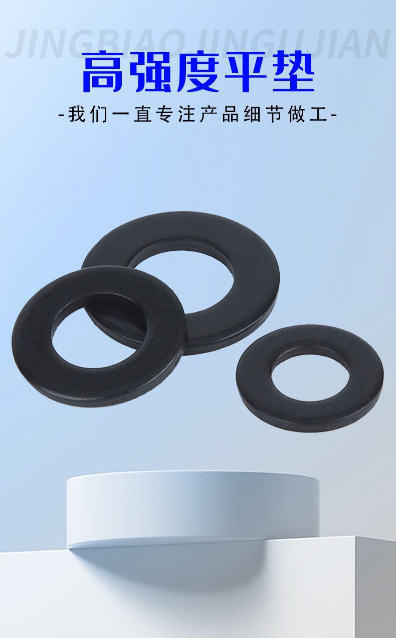 8.8级高强度黑色垫片发黑平垫片金属平垫圈螺丝垫片加大加厚垫圈