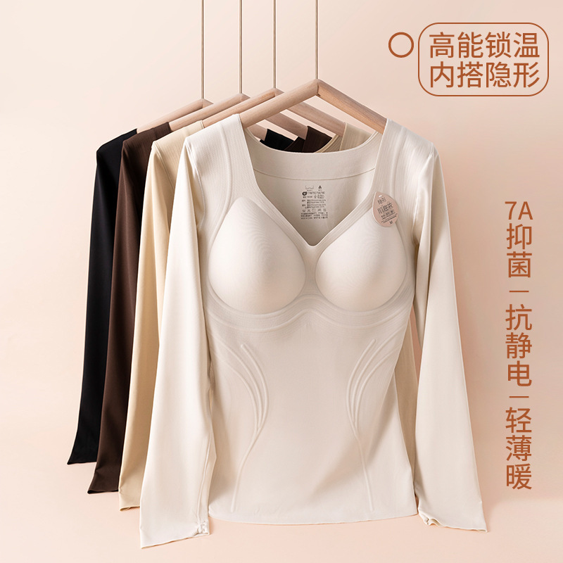 7A抗菌保暖内衣女带胸垫肌底衣秋衣乳木果润肤修身显瘦秋冬外穿