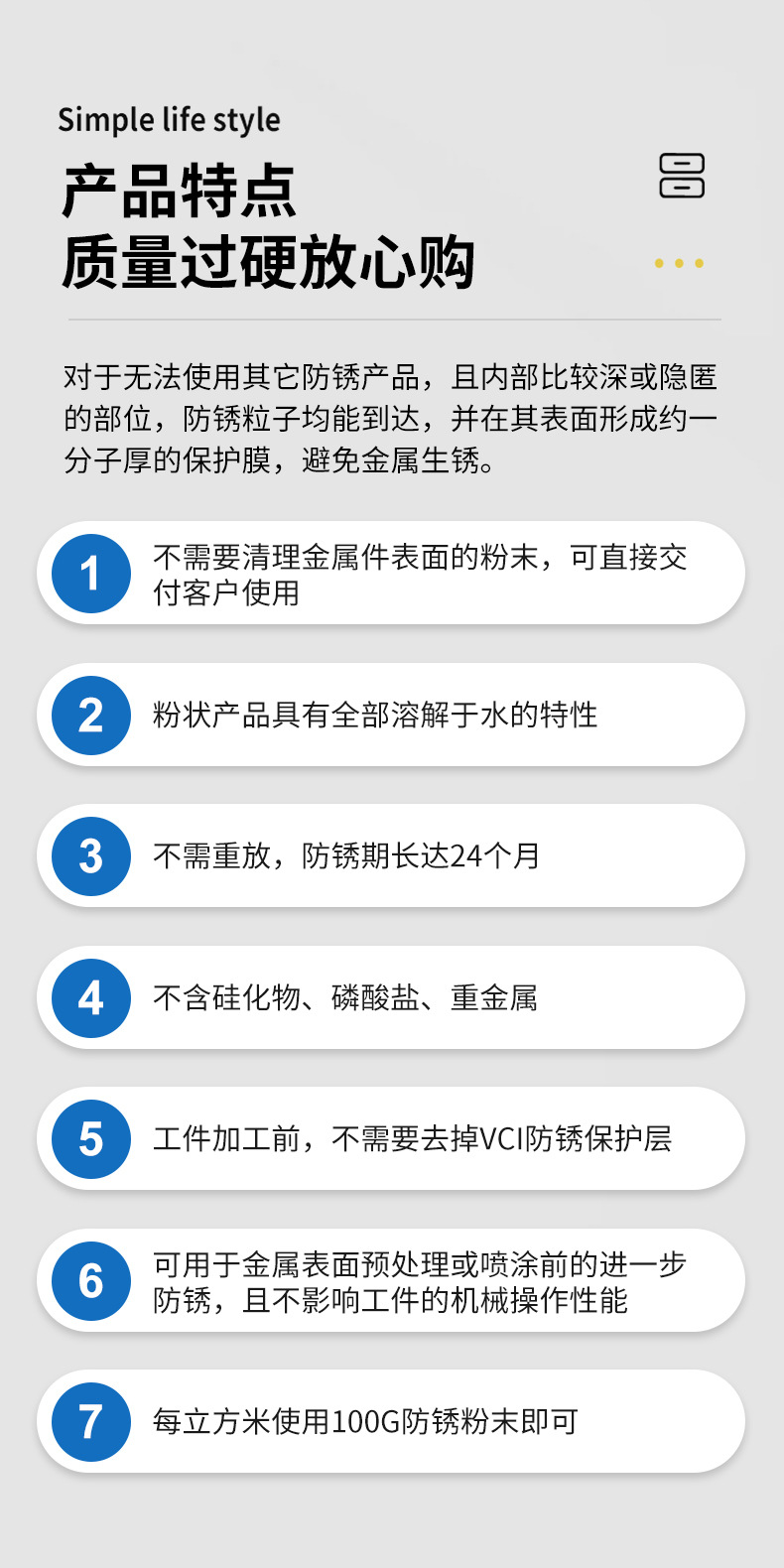厂家供应10克防锈粉末VCI气相多金属用气化性超细