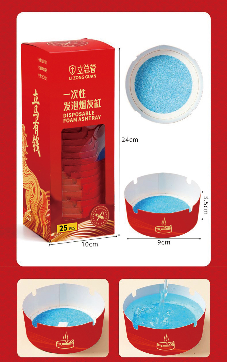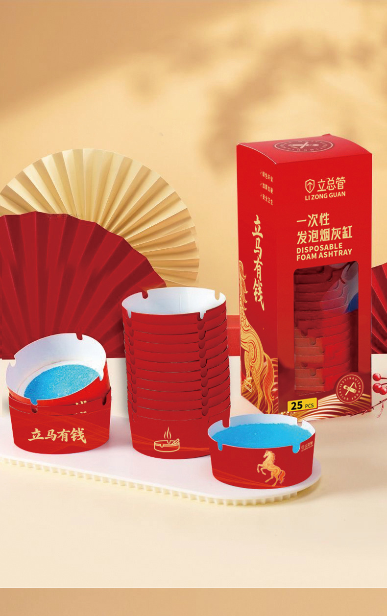 喜迎2026新年限定款一次性发泡烟灰缸办公室快速灭烟吸附烟灰健康