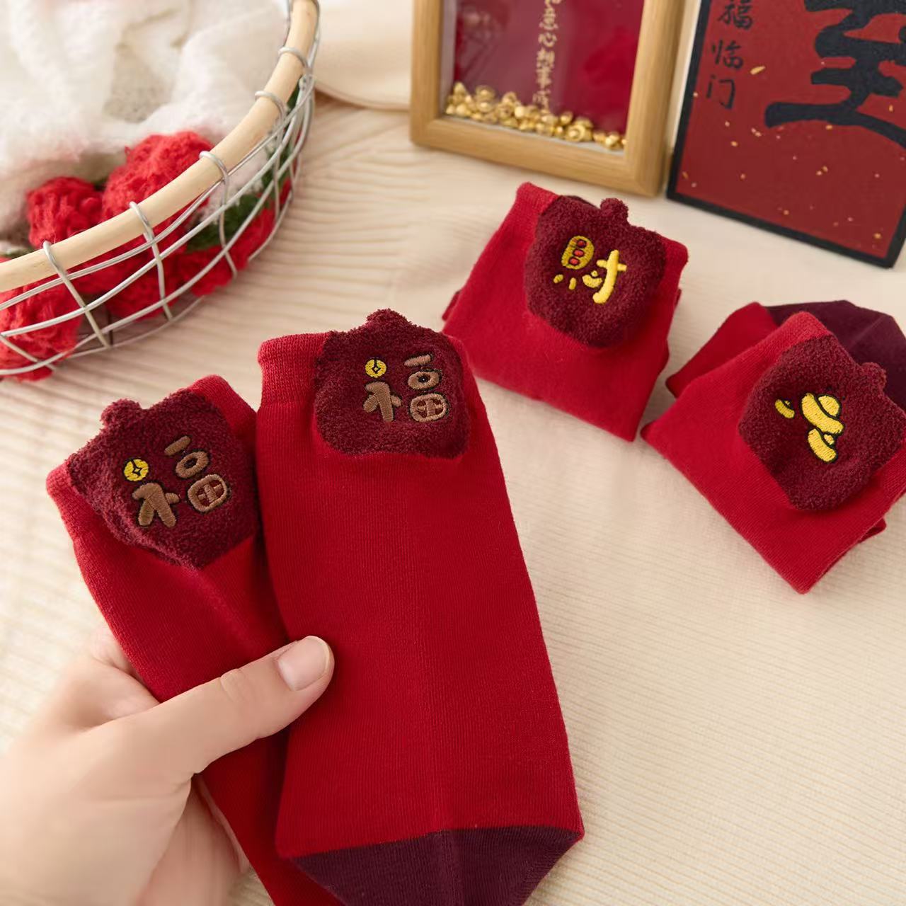 本命年大红袜子女喜庆红色男女中筒袜AB款暴富发财喜乐新年袜好运