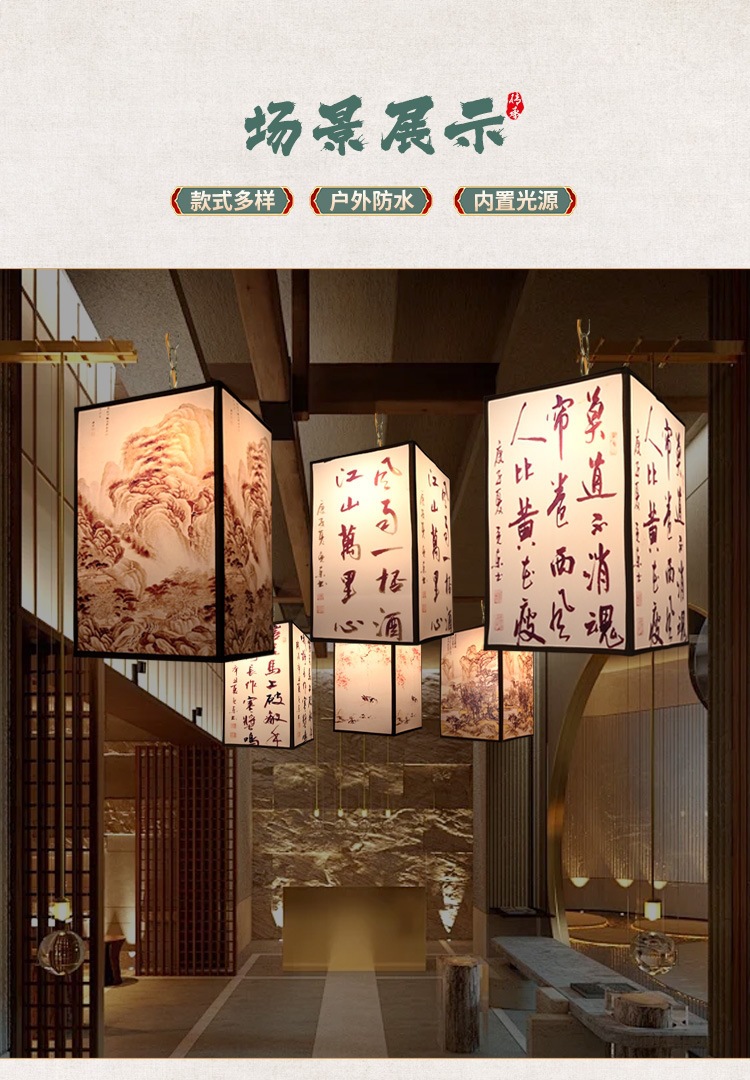 户外防水仿古诗词山水书法梅兰竹菊古镇景区古风国风创意方形灯笼