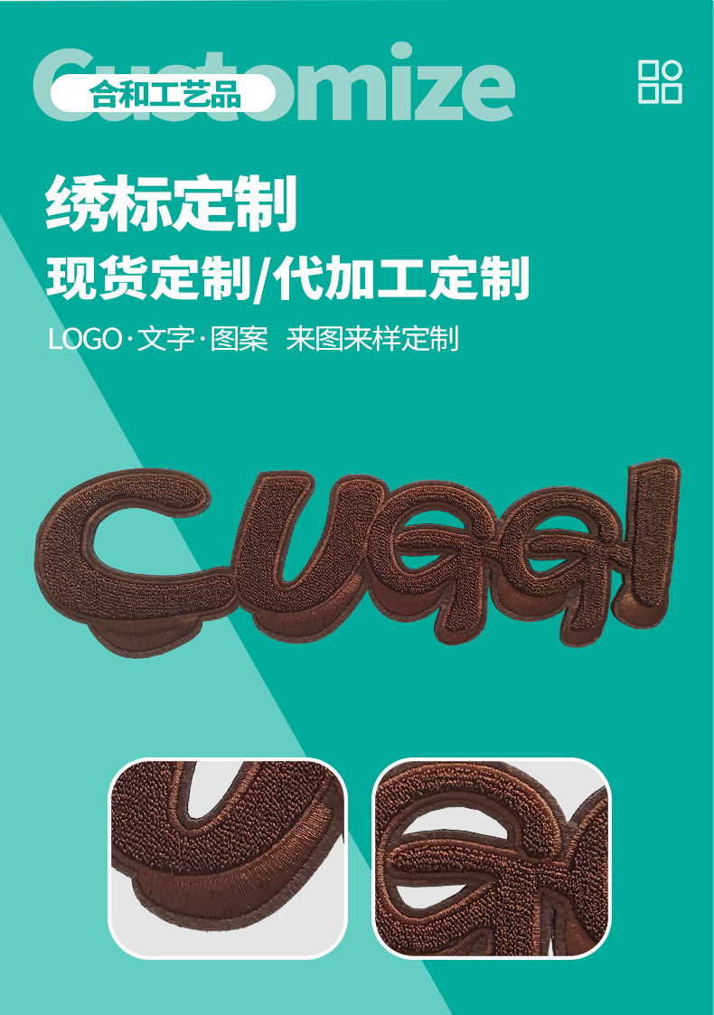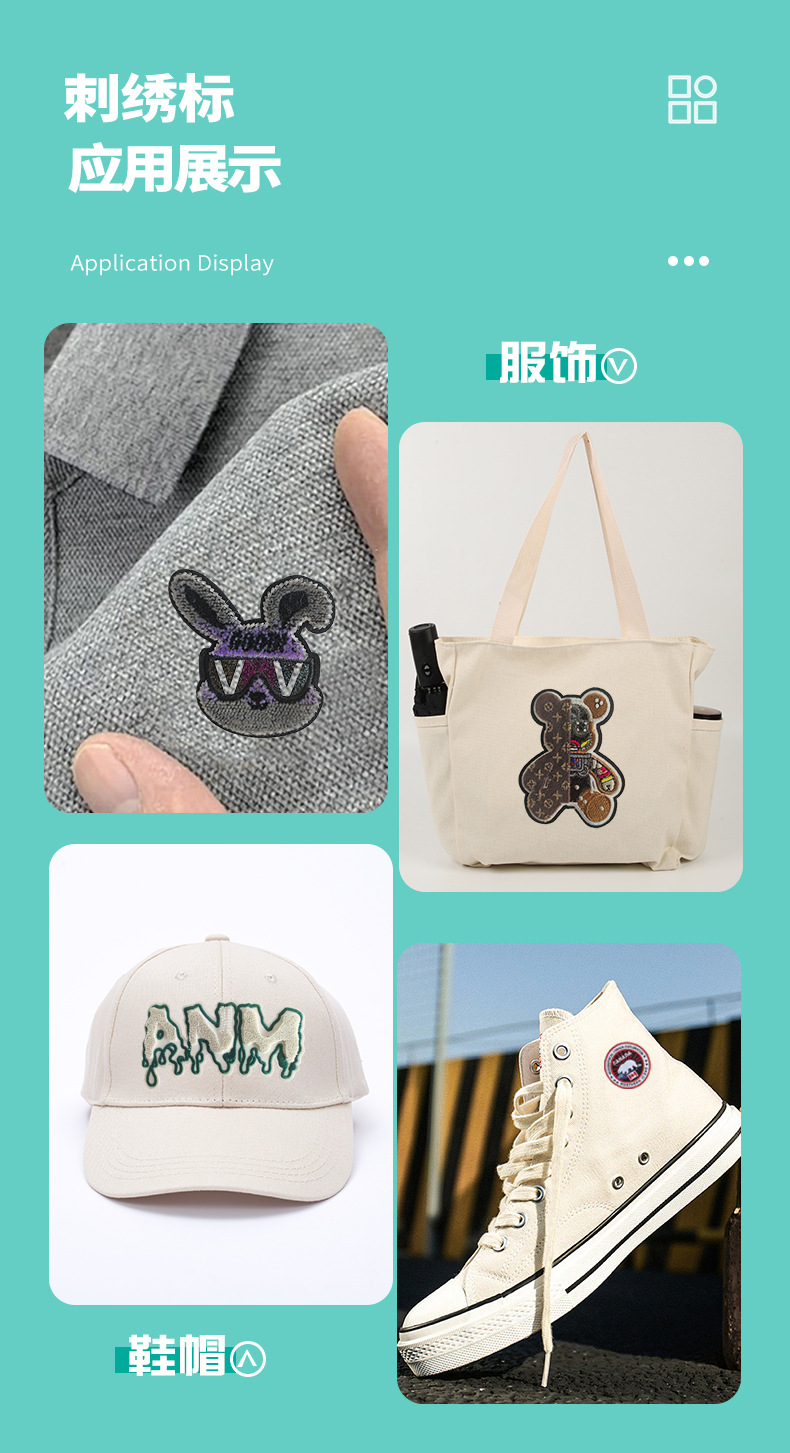 推荐理由:源头工厂定制英文绣花刺绣贴帆布包帽子布贴臂章绣贴批发定做