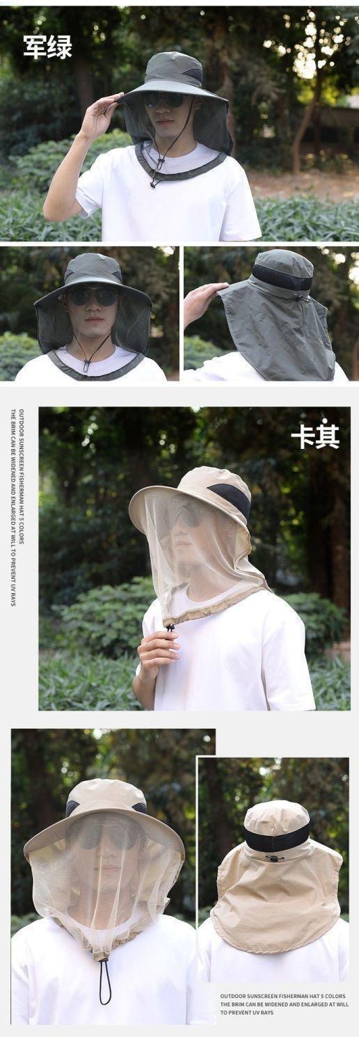 野钓防蚊帽子男士钓鱼帽披肩防晒遮阳帽防紫外户外登山专用帽子女